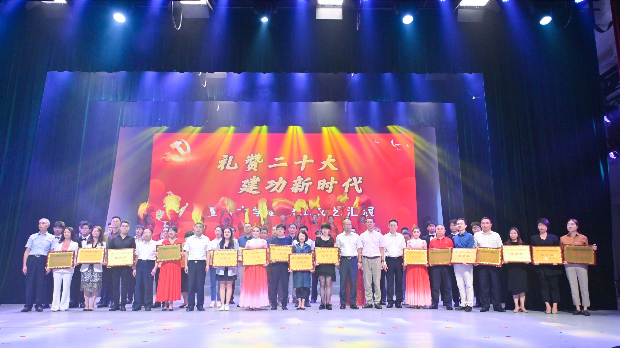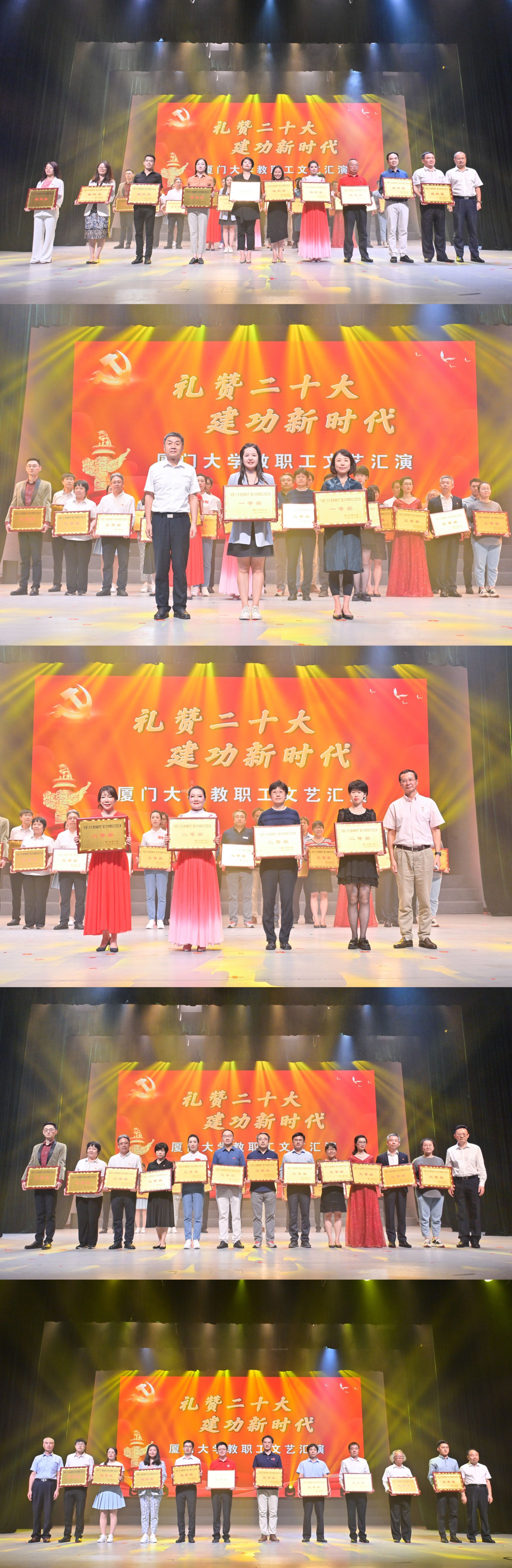 出席的校领导和有关部门负责人为获奖单位颁奖。演出在全场齐唱厦门大学校歌中圆满落下帷幕。