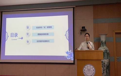 讲座围绕三个内容展开:归去来兮“礼”的智慧、素雅的高知形象、仪态提升实操练习。刘娟女士认为:教师的仪容仪表留给学生的第一印象应具有教育意义,儒雅端庄的气质,不仅能够增强自信心提升工作和生活质量,更能够引导学生树立健康、自然、积极的正向审美观念;表情印象、仪容印象、服饰印象作为形象的三要素,时刻彰显着教师职业形象的再塑造,展示教师的精神风貌。