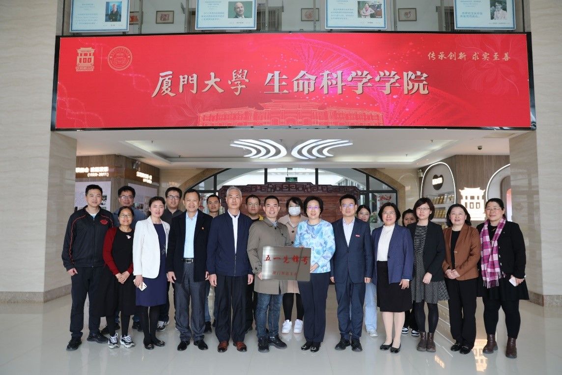 在生命科学学院,邓朝晖等一行详细了解了生物医学仪器共享平台在服务科研、科普宣传等方面所做的工作,肯定了平台所取得的成绩。在厦门市“五一先锋号”授牌仪式上,平台执行主任谢昌传代表平台接受邓朝晖授牌。叶鹏飞勉励平台把荣誉作为继续前进的动力,积极培育劳模工作室,为学校发展做出更大的贡献。平台副主任、医学院副院长谢莉萍表示,平台取得的成就离不开学校的大力支持,将再接再厉,努力工作,把平台建设得越来越好。学院党委书记马进龙表示,学院将一如既往支持平台建设,关心平台工作人员成长发展,助力平台建设成为能与世界一流大学相颉颃的高质量平台。