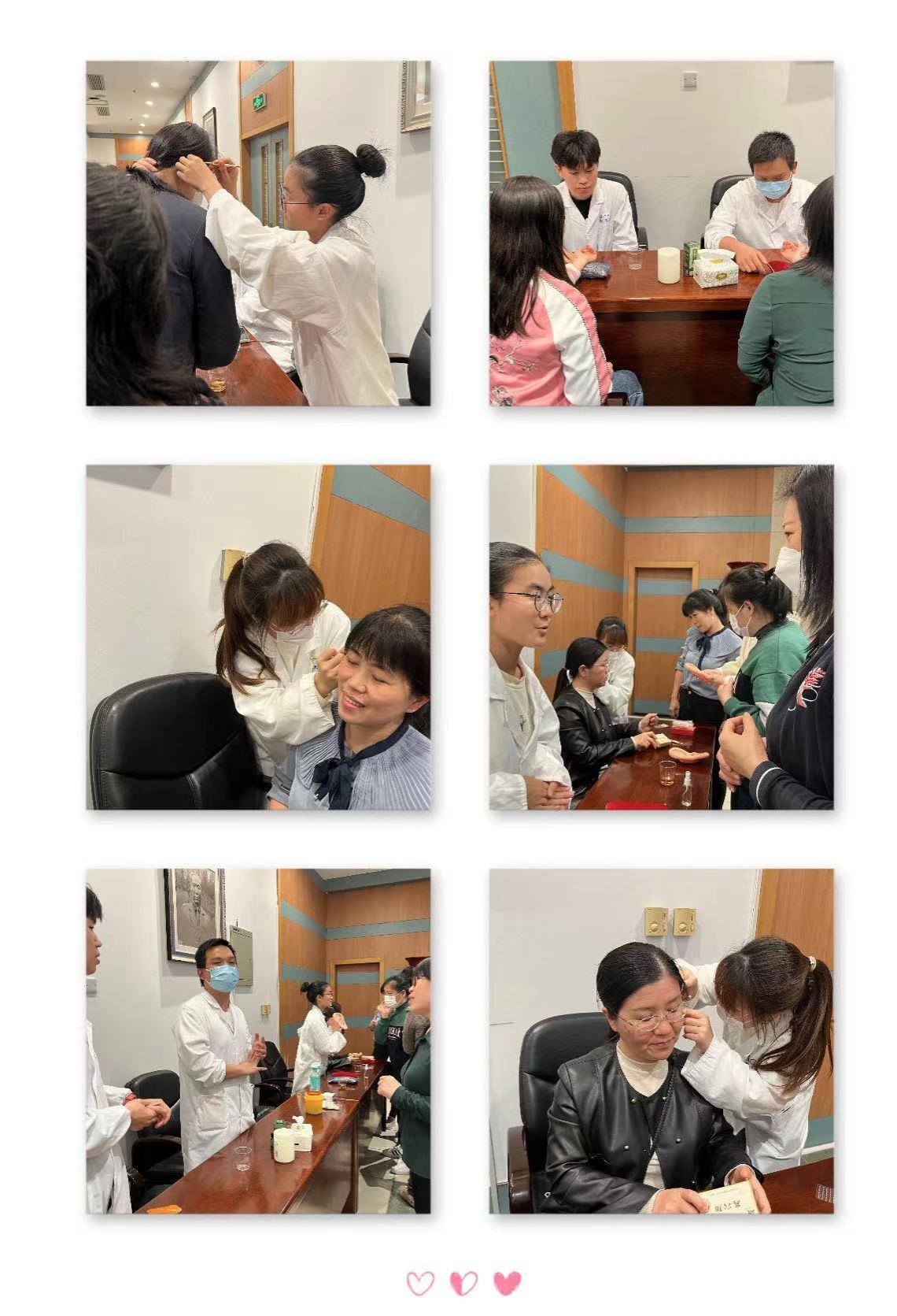 来自中医协会的同学们在讲座结束后,为现场的老师们进行了简易耳穴治疗、刮痧、针灸、按摩等疗法体验,体验活动收到老师们的一致好评,大家纷纷表示本次讲座的举办既让大家了解到了中医药文化的博大精深,又为日常养生保健提供了指导,是一次真正的走心又用心的讲座。