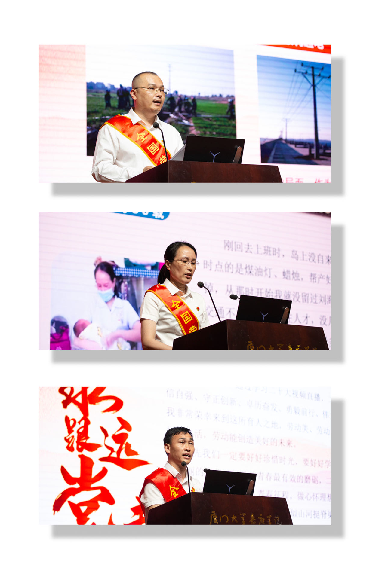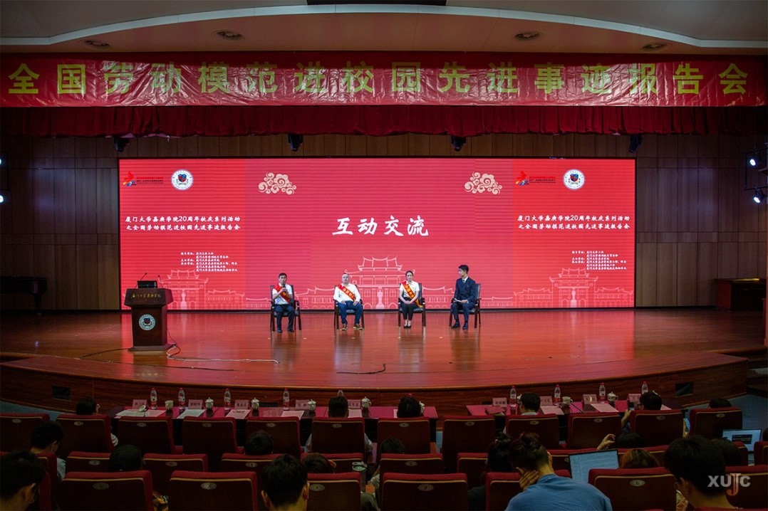 以劳模先进事迹作为立德树人的生动教材,培养广大师生勤俭、奋斗、创新、奉献的品格。5月19日,全国劳动模范进校园先进事迹报告会在主楼群3号楼大报告厅举行。全国劳动模范、福州市公共交通集团有限责任公司第七车队车技副队长胡明华,全国劳动模范、莆田市第一医院南日分院(秀屿区南日镇卫生院)妇产科护士长魏德英,全国劳动模范、八方港口技术设备部副经理、嘉庚学院机电工程学院2010届校友连俊,与漳州校区师生分别从本职工作出发,分享了他们的工作感悟和奋斗故事。