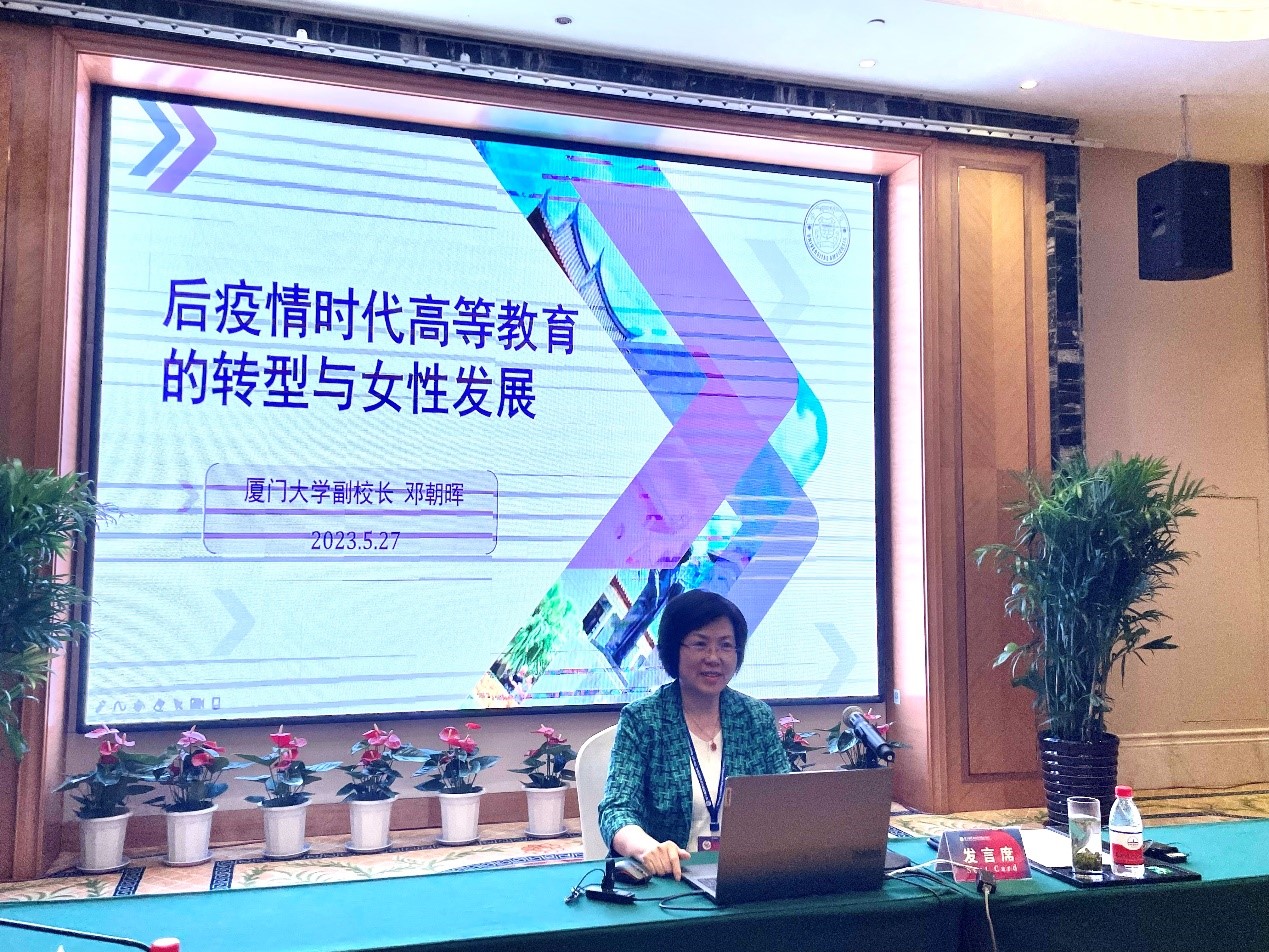 本届论坛由世界大学女校长论坛组委会、吉林外国语大学、中国传媒大学联合主办,主题为“后疫情时代全球高等教育共同体构建”。论坛设置主旨演讲、平行论坛、专题圆桌会议、发布共同宣言等多个环节。嘉宾从不同维度和领域讨论分享、碰撞交流,为后疫情时代发挥现代女性领导力,推进大学创新性发展,构建全球高等教育共同体建言献策。本届论坛组委会特别设立“世界大学女校长论坛奖”,厦门大学等7所高校和5家企业获此殊荣,邓朝晖代表厦门大学上台领奖,并受邀作“后疫情时代高等教育的转型与女性发展”主旨发言。