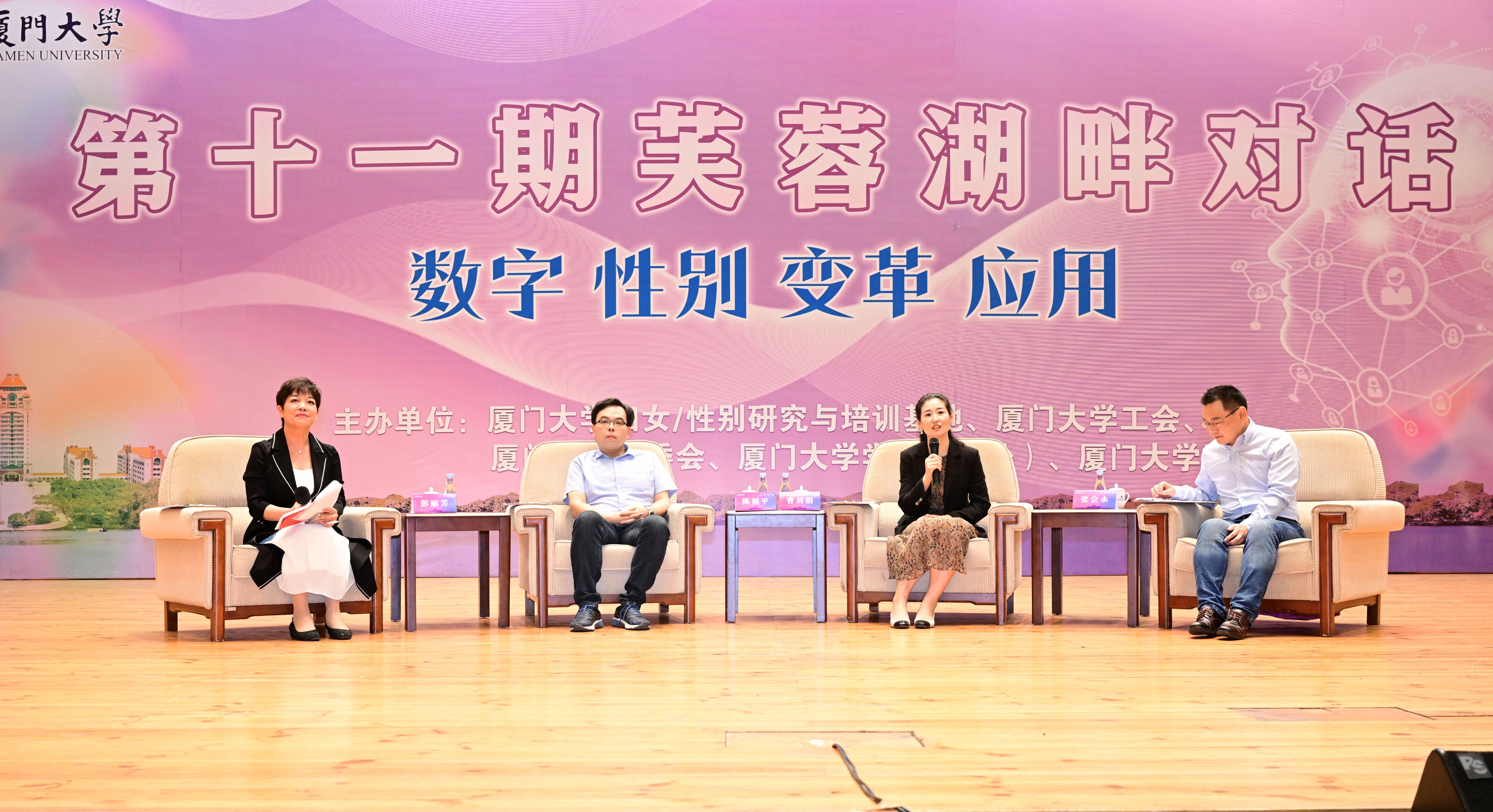 6月6日晚,第十一期芙蓉湖畔对话在厦门大学科学艺术中心音乐厅举行。此次对话主题聚焦“数字·性别·变革·应用”,邀请相关领域的三位专家来到对话现场,与听众共同交流数字时代下的性别话题。本期对话由厦门大学妇女/性别研究与培训基地、工会、妇委会、学生工作部(处)、团委联合主办。厦门大学党委常委、副校长、校工会主席、厦门大学妇女/性别研究与培训基地主任邓朝晖,厦门市妇女联合会党组成员、副主席江彩蓉,厦门大学原副校长、校友会副理事长詹心丽等领导和厦门大学师生共300余人参加了现场活动。