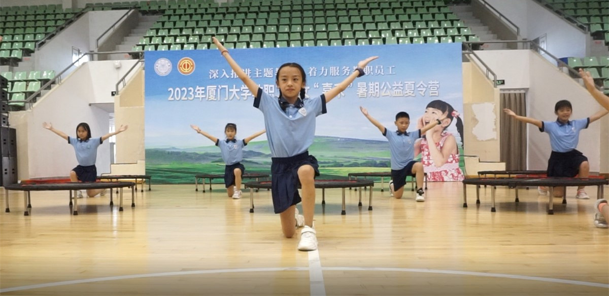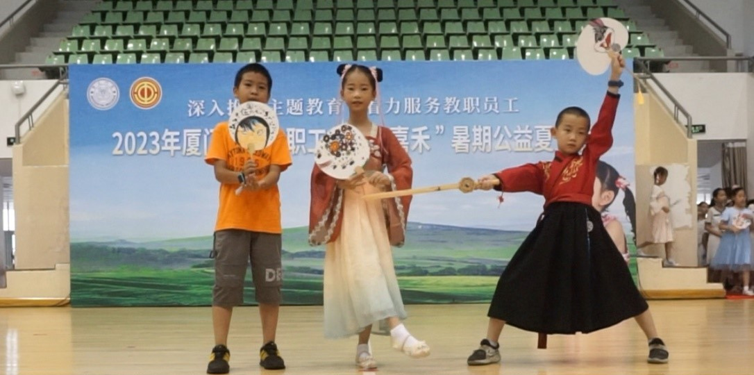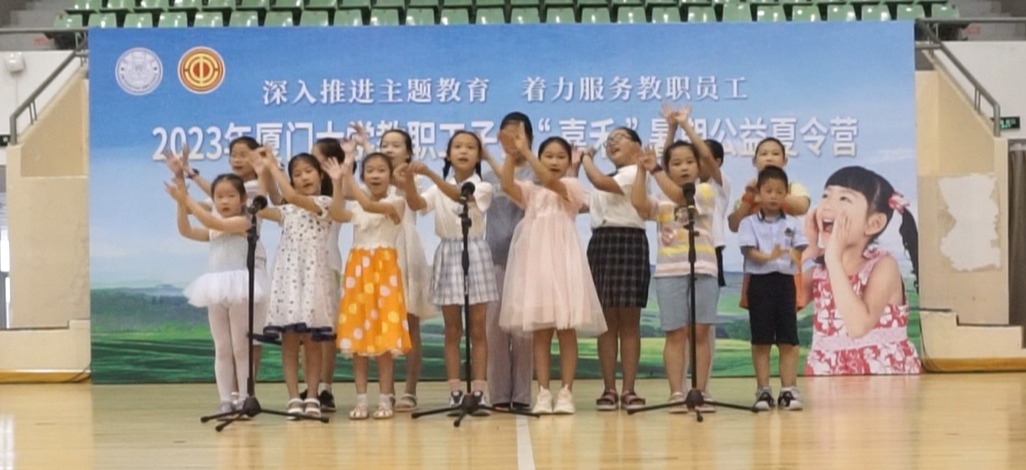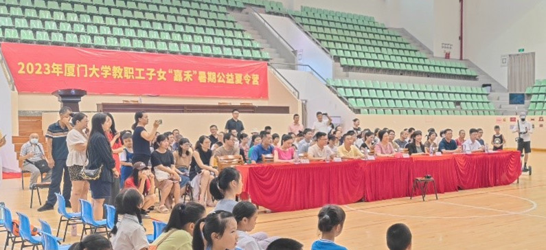 沐浴着夏日的阳光,和着年少的节拍。7月21日上午,2023年厦门大学教职工子女“嘉禾”暑期公益夏令营汇报演出在思明校区明培体育馆举行。厦门大学党委常委、副校长、工会主席邓朝晖,校工会常务副主席洪秋霞 ,体育教学部党委书记郑树东 ,校工会副主席余炳建,人事处副处长柯自聪,后勤集团工会主席林琳,幼儿园园长王美玲,老师代表,家长代表,学员代表等出席汇报演出活动。