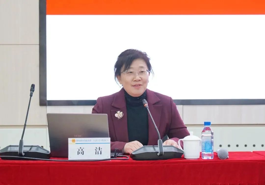 高洁作了题为《认真学习贯彻习近平总书记重要讲话精神,努力完成中国工会十八大确定的目标任务》的主旨报告。她传达领学了习近平总书记在同全国总工会新一届领导班子成员集体谈话时的重要讲话精神和中国工会十八大精神,学习了蔡奇同志代表党中央在中国工会十八大上的致词精神、王东明同志在中国工会十八大上作的大会报告以及《中国工会章程(修正案)》的主要内容等,专题介绍了教科文卫体工会系统今后一段时期的总体工作考虑和重点工作思路。她强调,高校工会系统要把深入学习贯彻习近平总书记重要讲话精神和落实中国工会十八大确定的各项部署、目标任务结合起来,明方向、知要求,拓广度、延深度,在把握工作特点、面对现实挑战的基础上,认真开展工作谋划,做好重点工作安排,继续推动工作创新。在谋划工作思路和举措方面,她表示,要把握好服务国家大局、中心工作、产业职工的总体思路,落实好服务化、体系化、品牌化、创新化、数字化的“五化”工作要求,不断健全工会工作体系。要坚持以职工为中心的工作导向,落实“双对标”要求,实施“凝心工程、筑梦工程、暖心工程、强基工程”,推动实现思想引领更有效、建功立业更有为、维权服务更有感、强基固本更有力的工作目标。