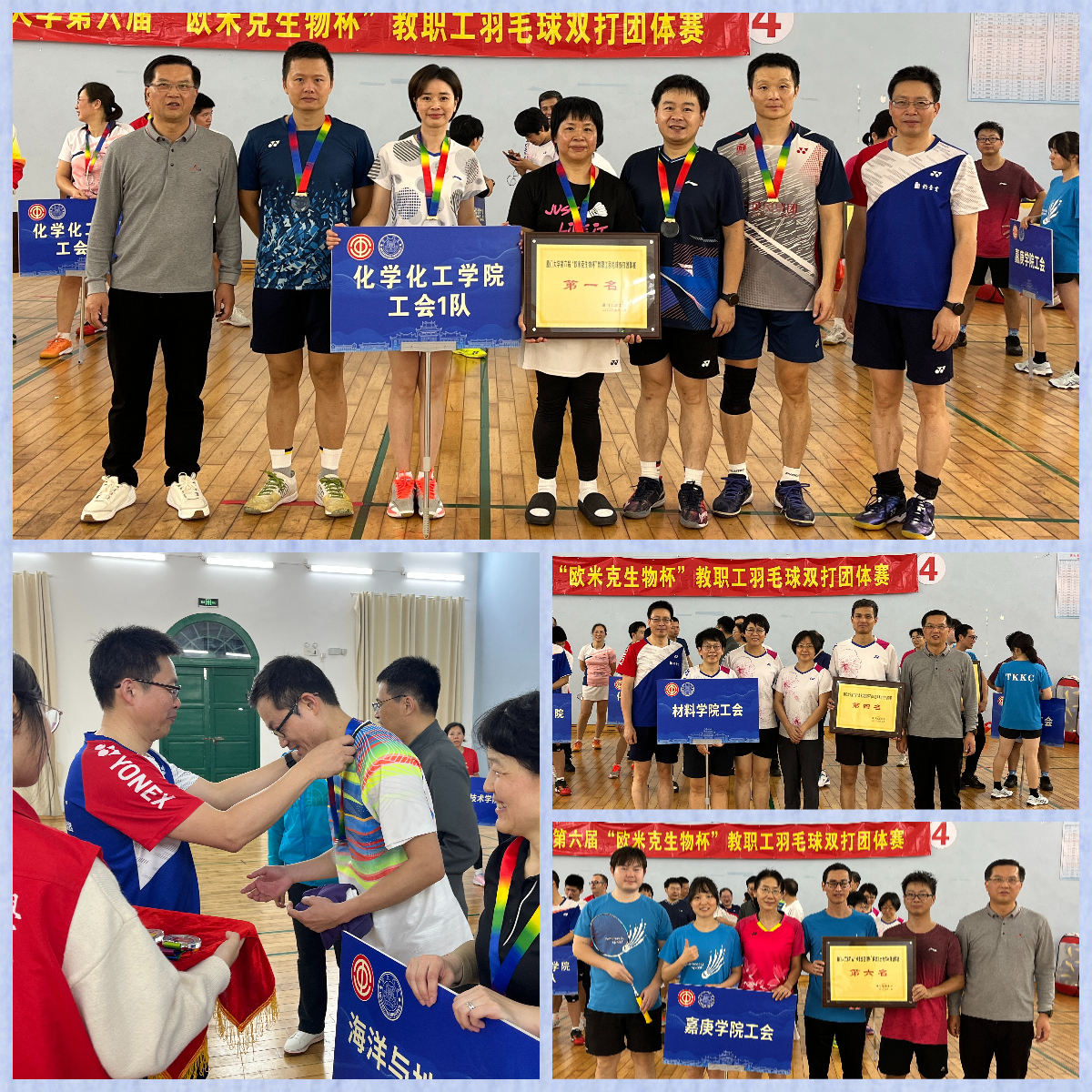 材料学院院长、校教职工羽毛球协会会长解荣军,校工会副主席余炳建为获得前八名队伍颁奖。