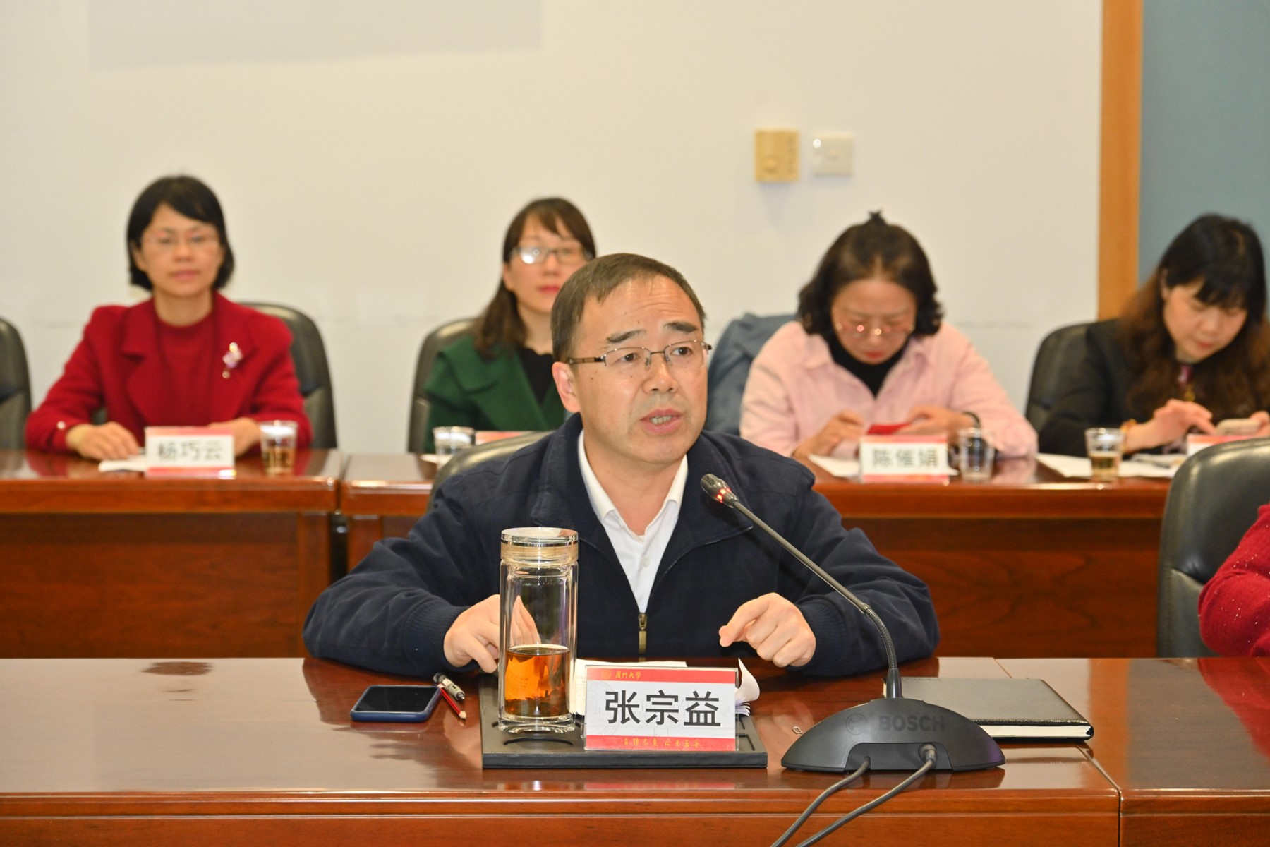 张宗益代表学校向全校广大女教职工、女同学和妇女工作者致以节日的问候和诚挚的祝福。他表示,过去一年来,学校全体女教职员工“巾帼不让须眉”,以女性特有的坚韧、执着、专注、细致,在教学、科研、管理、服务等工作岗位上奋力拼搏、建功立业,为学校“双一流”建设添砖加瓦,谱写了一首首壮美的“巾帼之歌”。希望全校女同胞们要牢记嘱托、感恩奋进,在投身教育强国实践中彰显巾帼担当作为;牢固树立主人翁意识,进一步增强“滚石上山、爬坡过坎”的紧迫感,奋勇争先、干事创业的责任感;崇德向善、引领风尚,用女性独特的大爱绽放更加璀璨的巾帼之美。他强调,新征程上,全校各单位要深入贯彻落实好党中央关于妇女事业发展的各项决策部署,努力为学校与时俱进建设世界一流大学凝聚巾帼之力、汇集巾帼之智。要在强化政治引领上更具高度,更加紧密地把妇女工作同党建工作、事业发展融合起来,不断增强工作的针对性和实效性。要在打造出彩舞台上更有力度,鼓励和支持广大女性人才的创造力竞相迸发,聪明才智充分展示。要在提升幸福指数上更显温度,全面深化数字赋能,强化智慧服务,不断增强厦大女性的获得感、幸福感和成就感。