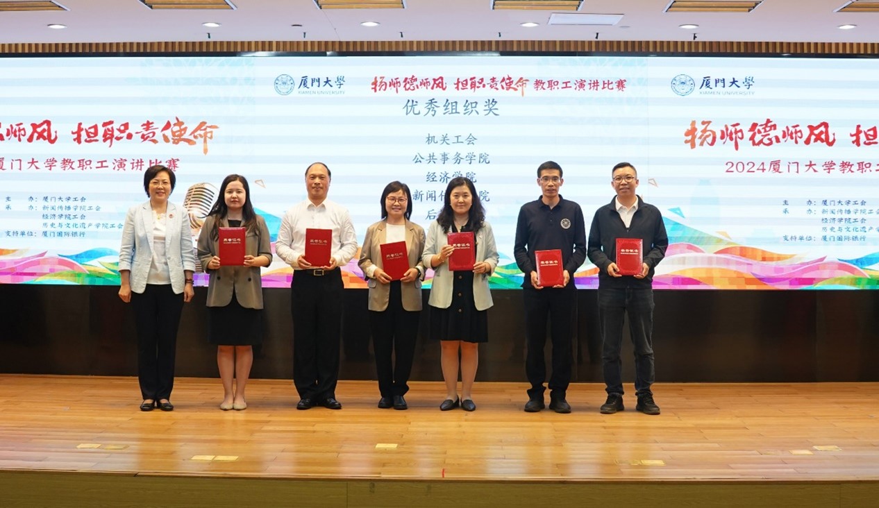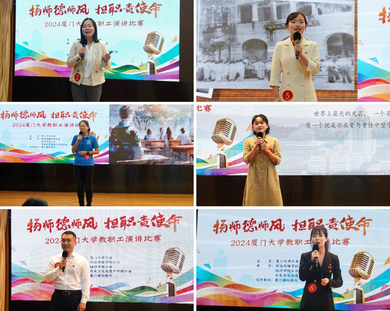 为了落实立德树人根本任务,展示教师风采、弘扬师德师风,激发广大教职工以更加昂扬的精神风貌立足本职岗位,表达教职工为学校的科学发展作贡献的信心和决心。4月12日晚,由厦门大学工会主办,新闻传播学院工会、经济学院工会、历史与文化遗产学院工会承办的“扬师德师风 担职责使命”教职工演讲比赛在科学艺术中心一楼多功能厅顺利举办。