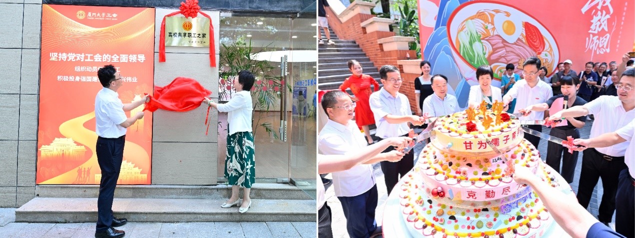 活动现场,邓朝晖副校长和孙理常委共同为厦门大学教职工“共享之家”揭牌。随后同高和荣常委,后勤集团党委书记马龙、总经理杨旸,校工会常务副主席洪秋霞,基层工会主席代表,教职工代表一起切下生日蛋糕,并向生日的教职工代表送上鲜花和贺卡,致以诚挚的问候,共贺教师佳节,分享生日喜悦。