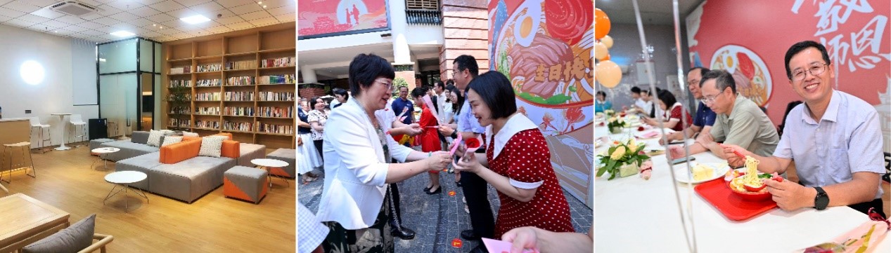 仪式结束后,参与活动的领导与老师们欢聚一堂,共同参观了“共享之家”,并在勤业餐厅品尝寓意喜庆与长寿的生日面条,共享这份温馨与喜悦。