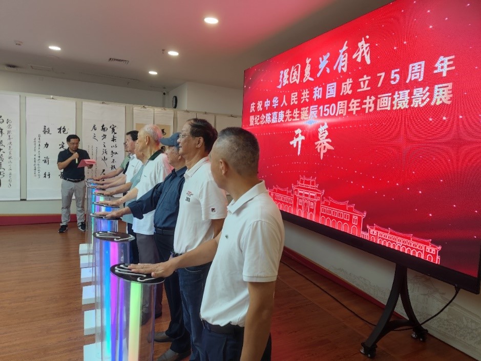 在热烈的掌声中,吴宣恭、王豪杰、卞守耆、林永生、洪秋霞、蒋东明、杨机像、陈全松等8位参加开幕式嘉宾共同点亮启动台,洪秋霞宣布书画摄影展正式开展。