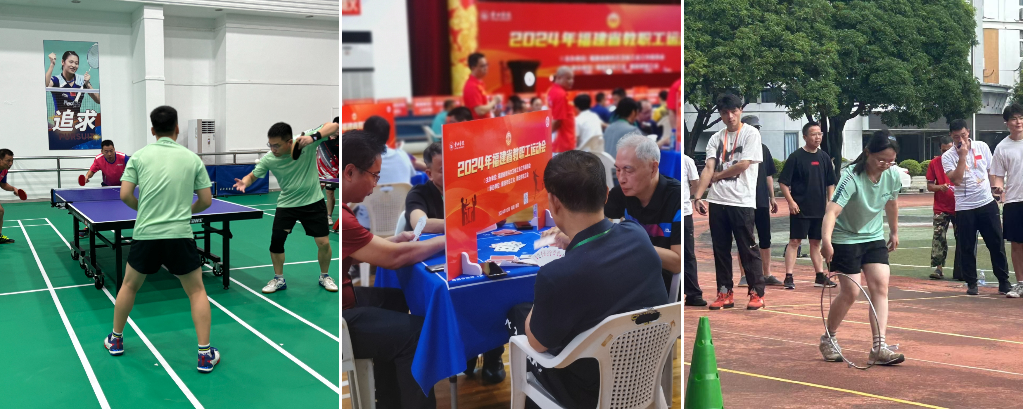 本次运动会设乒乓球、扑克牌80分和趣味运动等三个项目,共有来自全省各地教育工会、高校和相关单位的37支代表队近400名运动员参与。我校专职巡视员(正处级)叶鹏飞带队来自学校机关、生命科学学院、航空航天学院、建筑与土木工程学院、创意与创新学院、嘉庚学院、资产经营有限公司、国际学术交流中心等单位的10名运动员参加此次运动会。