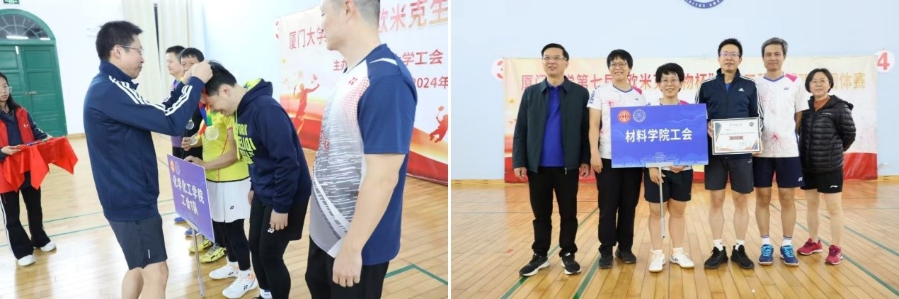 材料学院院长、校教职工羽毛球协会会长解荣军,校工会副主席余炳建为获得前八名队伍颁奖。