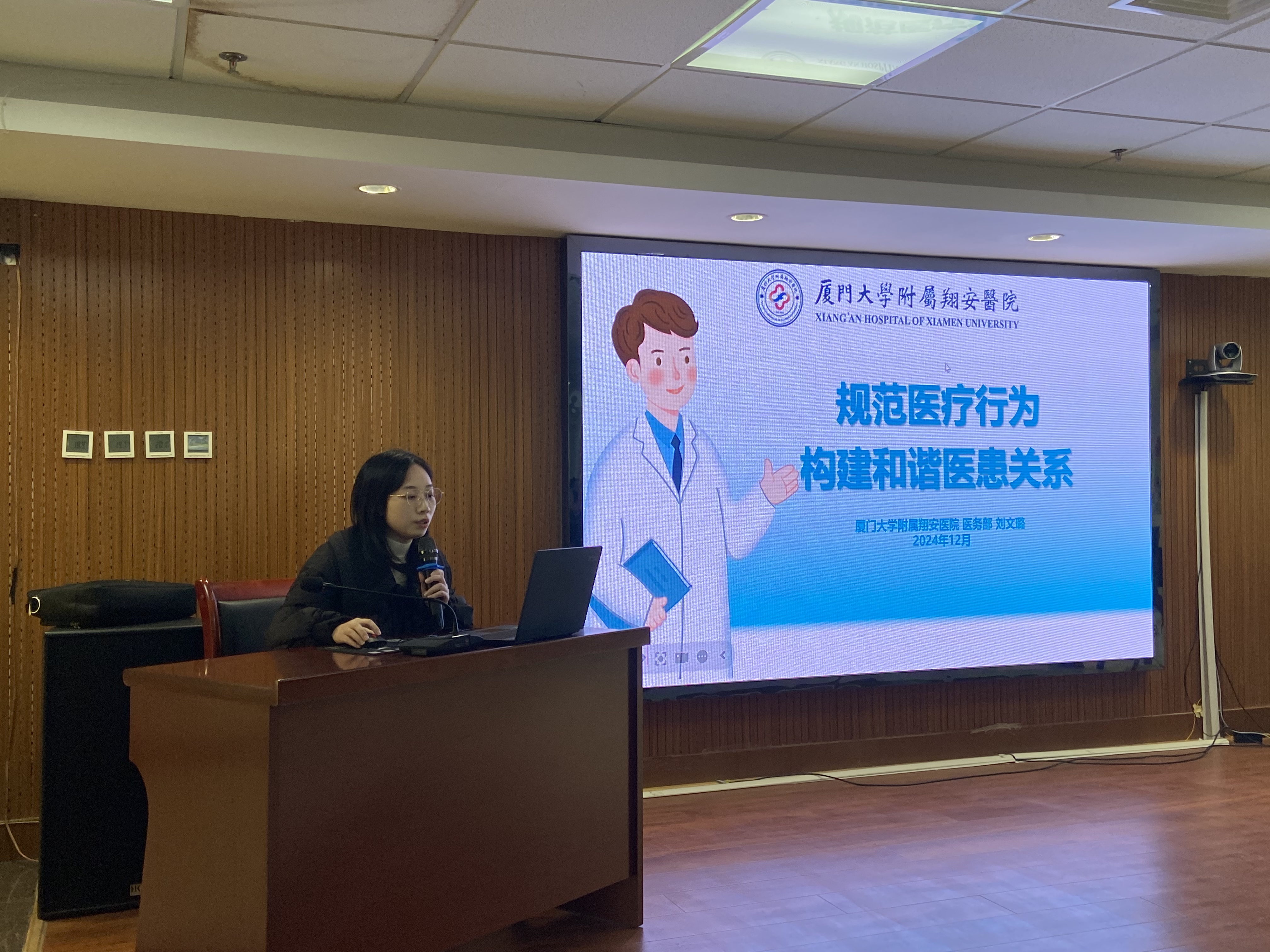 为深入学习贯彻落实党的二十届三中全会精神,落实福建省总工会“工助振兴”专项行动,在校医管办的大力支持下,校工会与附属翔安医院工会沟通交流,在光泽县卫健局的关心帮助下,12月23日,我校附属翔安医院消化内科主治医师刘文璐老师赴光泽县总医院作《规范医疗行为 构建和谐医患关系》讲座分享。