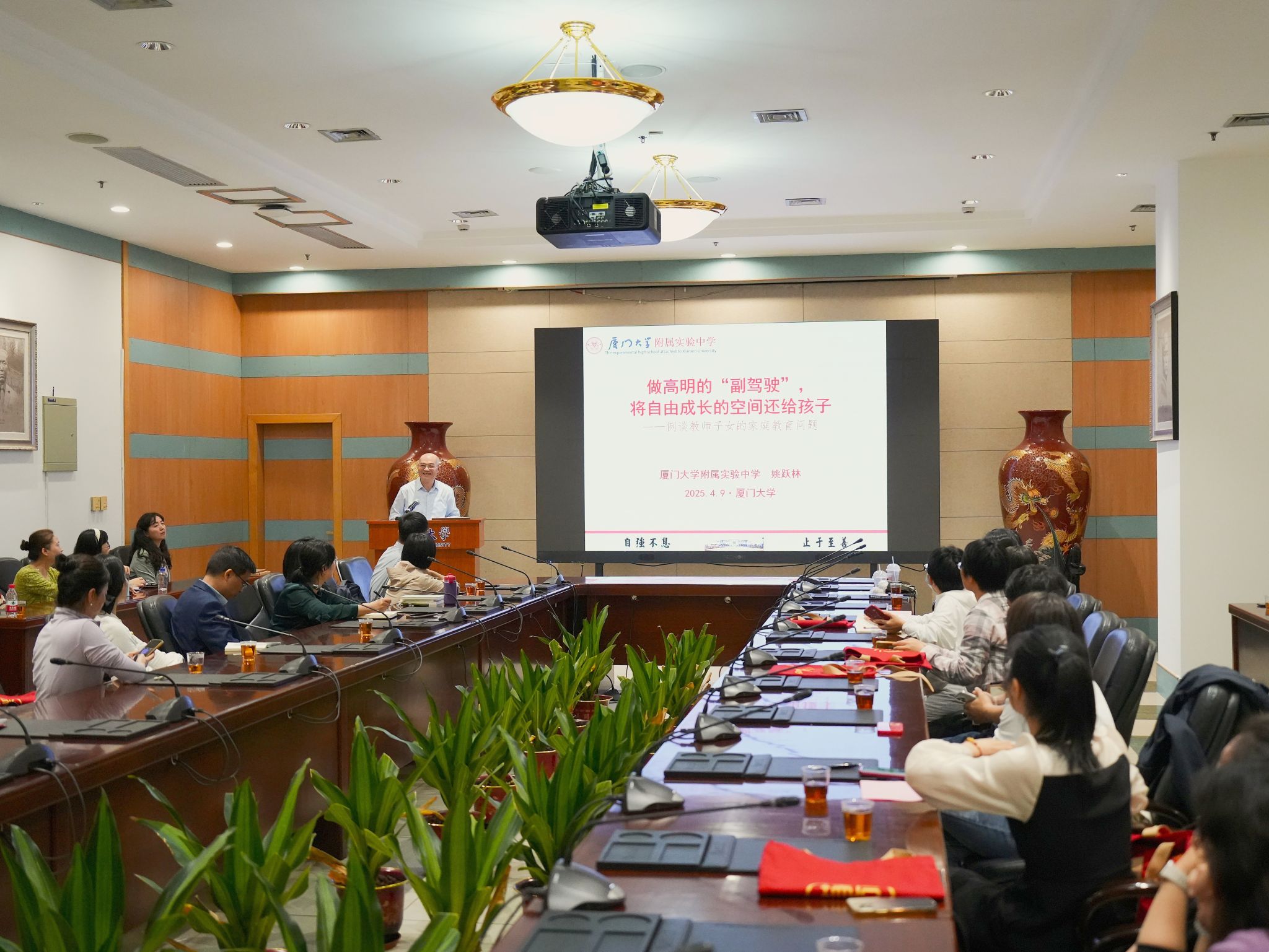 4月9日,厦门大学工会“兴业护航 共同成长”父母课堂系列活动首期在思明校区成功开讲。本次活动以“做高明的‘副驾驶’,将自由成长空间还给孩子”为主题,特邀厦门大学附属实验中学名誉校长姚跃林老师担任主讲嘉宾,吸引了校内百余名教师及家长参与。活动由校工会副主席茹晓燕主持。
