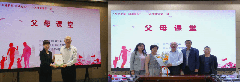 现场互动环节,多位教师围绕“如何发现孩子的闪光点”“青春期情绪管理”等问题与姚校长展开深入的讨论。校工会常务副主席洪秋霞为姚校长授予首期父母课堂纪念牌。厦门大学化学化工学院工会作为本次活动的承办单位,院党委副书记杜超现场为姚跃林校长献花。
