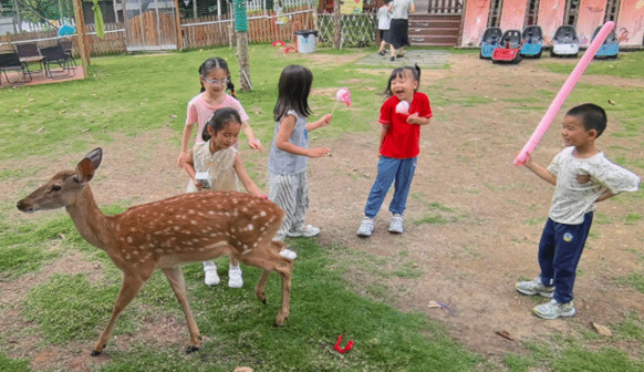 讲座期间,孩子们也在丰富多彩的自然活动中收获快乐与成长:在萌宠区与羊驼、小鹿亲密互动,在草地上奔跑嬉戏,在游戏区尽情玩耍,在轻松愉悦中感受责任与关爱,亲近自然,快乐成长。