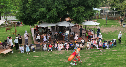上午9:15,活动在欢快热烈的氛围中拉开序幕。工作人员装扮成小丑,为每位小朋友精心制作各式气球,妙趣横生;家长与孩子们在棉花糖DIY区亲手制作甜蜜“云朵”,体验童趣与陪伴的乐趣;杂耍表演精彩纷呈,赢得阵阵掌声和笑声,为活动现场增添了无限活力与温情。