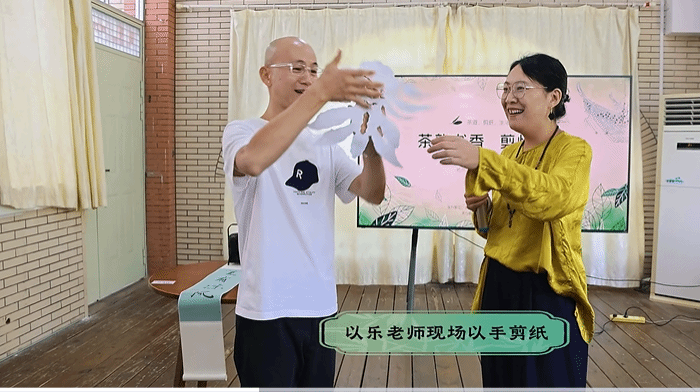 在在夏至到来之际,剪纸艺术家以乐用红纸剪裁出厦大剪影,与茶道中的温杯、注水动作相映成趣,书香、茶香、纸香交织,让传统文化在校园里焕发新的生机。