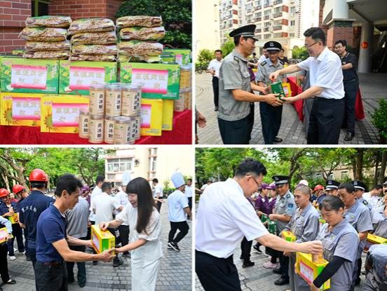 慰问现场,孙理副书记对后勤集团在落实立德树人根本任务、推进服务质量提升、为师生办实事解难题以及服务育人等方面所作贡献给予充分肯定,向不畏高温、坚守岗位的后勤员工致以诚挚慰问和衷心感谢。他强调,后勤工作无小事,事事关系师生切身利益;平凡岗位不平凡,件件彰显育人服务初心,希望员工们在确保安全的前提下,继续保持高度责任感和工作热情,为师生提供优质服务保障。同时,他提醒员工在工作中严格遵守安全程序,科学调配工作与休息时间,及时补充水分及电解质,切实做好个人防护;台风季节将至,应全面加强迭代升级工作,切实保障各项工作细致周密、落实到位。