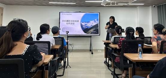 在短视频环节,张老师借助丰富案例,介绍了短视屏在新闻、日常生活等场景中的应用,详细讲解了运镜、景别、转场等实用技巧,让“零基础”的听众也能信心满满地开启短视频创作之路。