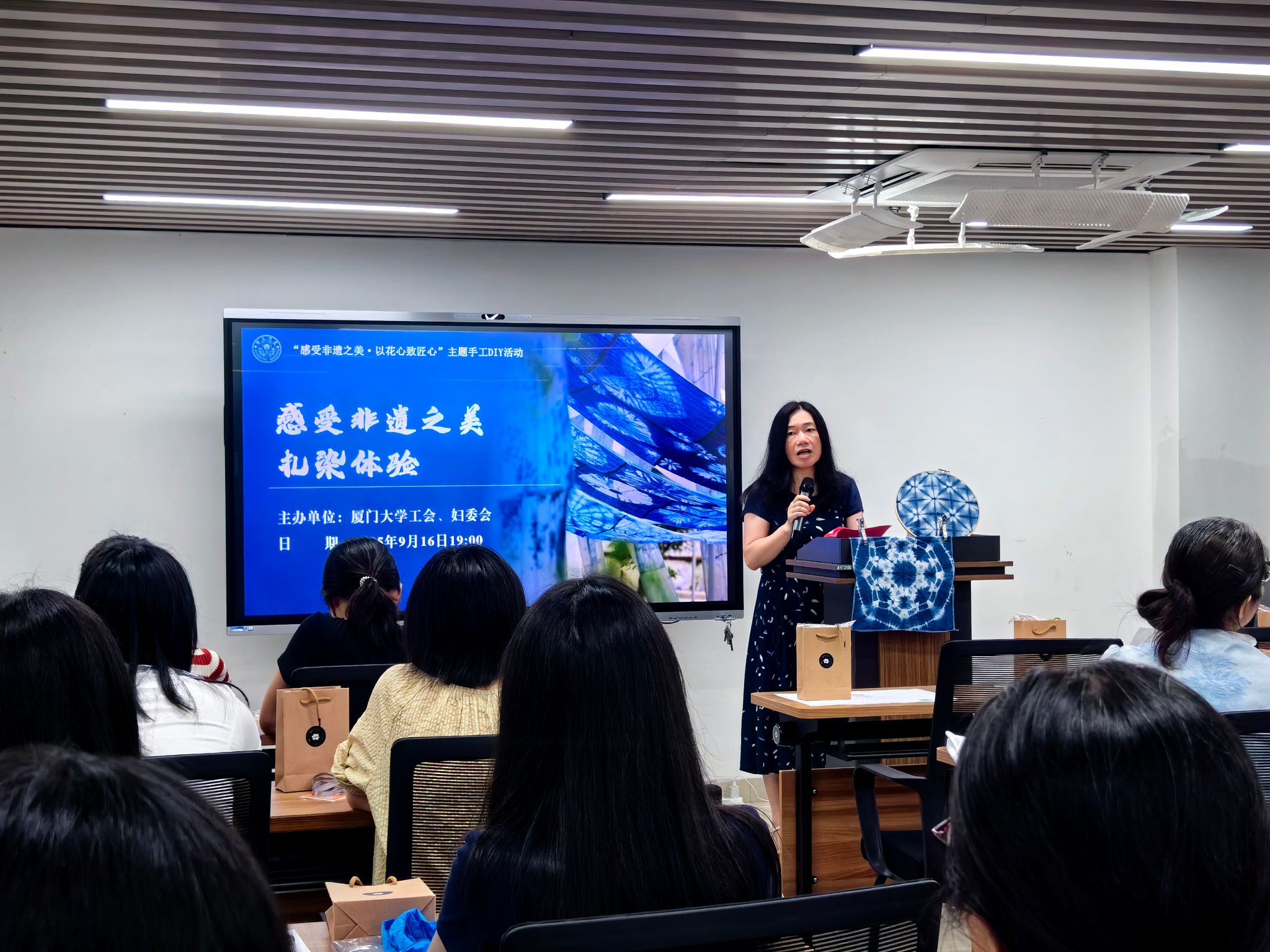 活动采取分校区形式开展。思明校区聚焦非遗传承,举办了扎染体验活动,由厦门大学工会副主席郭如梅主持。