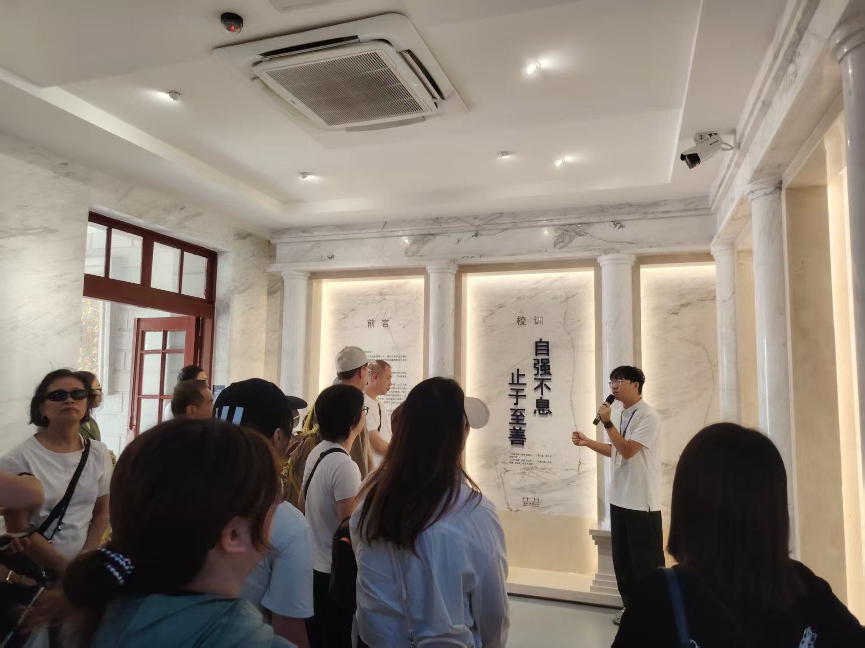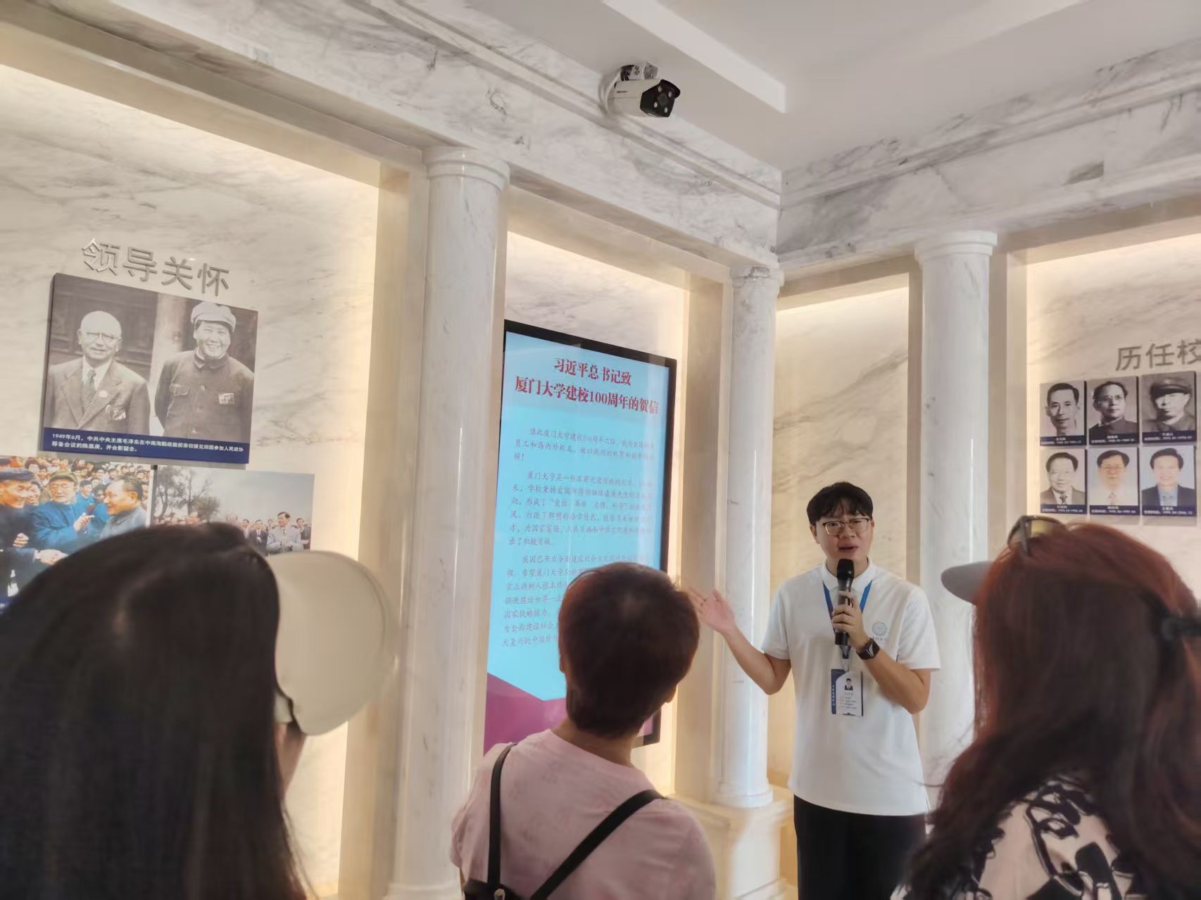 代表团首先走进了承载着厦大厚重历史的校史馆。在详尽的图文史料与珍贵文物前,代表团成员们放缓脚步,凝神倾听工作人员讲解。从校主陈嘉庚先生毁家兴学的赤子之心,到抗战烽火中西迁长汀办学的艰苦卓绝,从新中国成立后院系调整中服务国家建设的担当,到改革开放前沿锐意进取的篇章,厦大与国家民族命运紧密相连的百年历程,校史长河中的点滴,深深打动了每一位来宾。