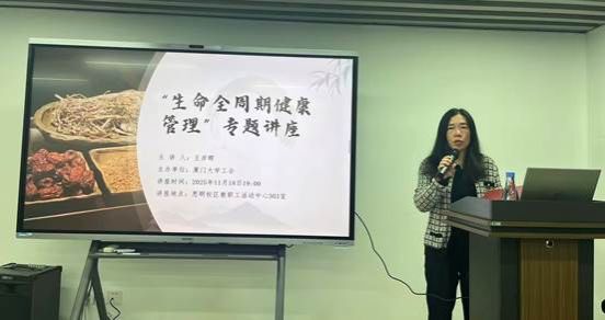 2025年11月18日晚,由厦门大学工会主办的“生命全周期健康管理”专题讲座在思明校区教职工活动中心303室顺利举行。活动特邀国务院政府特殊津贴获得者、厦门大学医学院中医学教授、主任医师王彦晖担任主讲,校工会副主席郭如梅主持。本次讲座旨在回应广大教职工对健康养生与疾病预防的普遍关切,助力大家提升健康管理能力,守护身心健康。