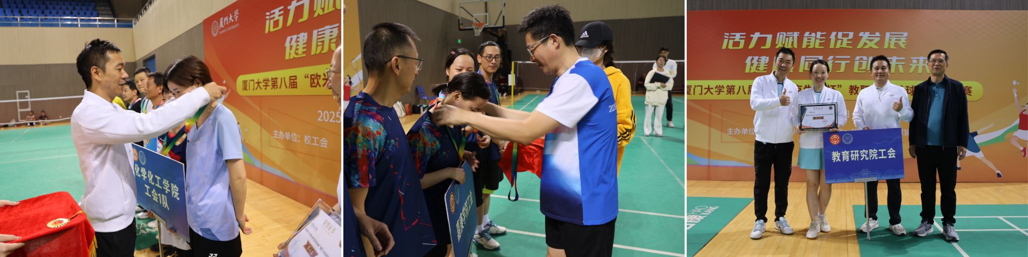 11月22日至23日,由校工会主办、校教职工羽毛球协会承办的厦门大学第八届“欧米克生物杯”教职工羽毛球双打团体赛在翔安校区爱秋体育馆羽毛球馆圆满落幕。