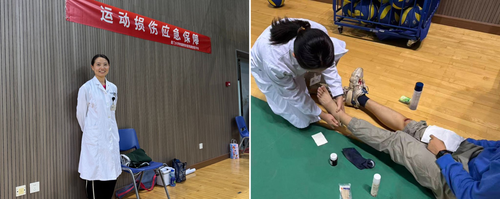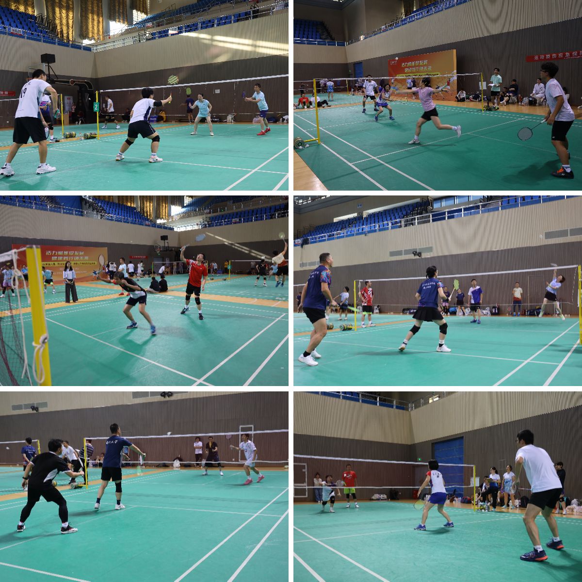 比赛现场气氛热烈,对决扣人心弦。参赛选手们精神饱满、斗志昂扬,在赛场上灵活运用吊球、扣杀、网前小球、高远球等各项技术,默契配合,奋力拼搏,精彩场面层出不穷,赢得了现场观众的阵阵掌声与喝彩。厦门大学附属翔安医院的医生在现场为赛事提供了专业的运动损伤应急保障,确保了活动的顺利进行。