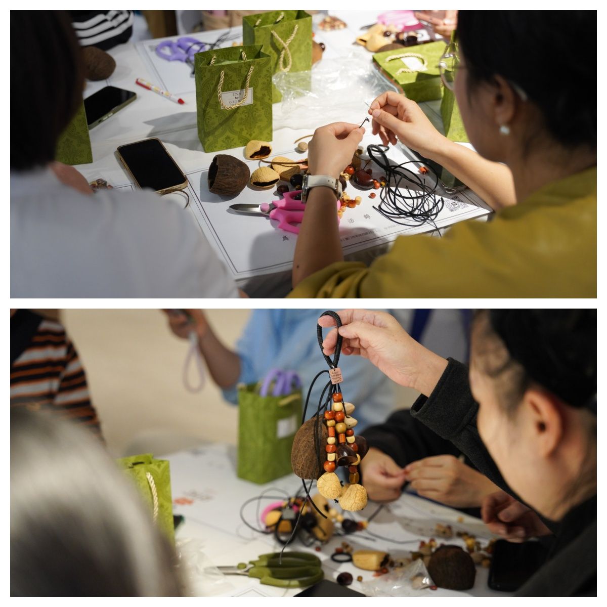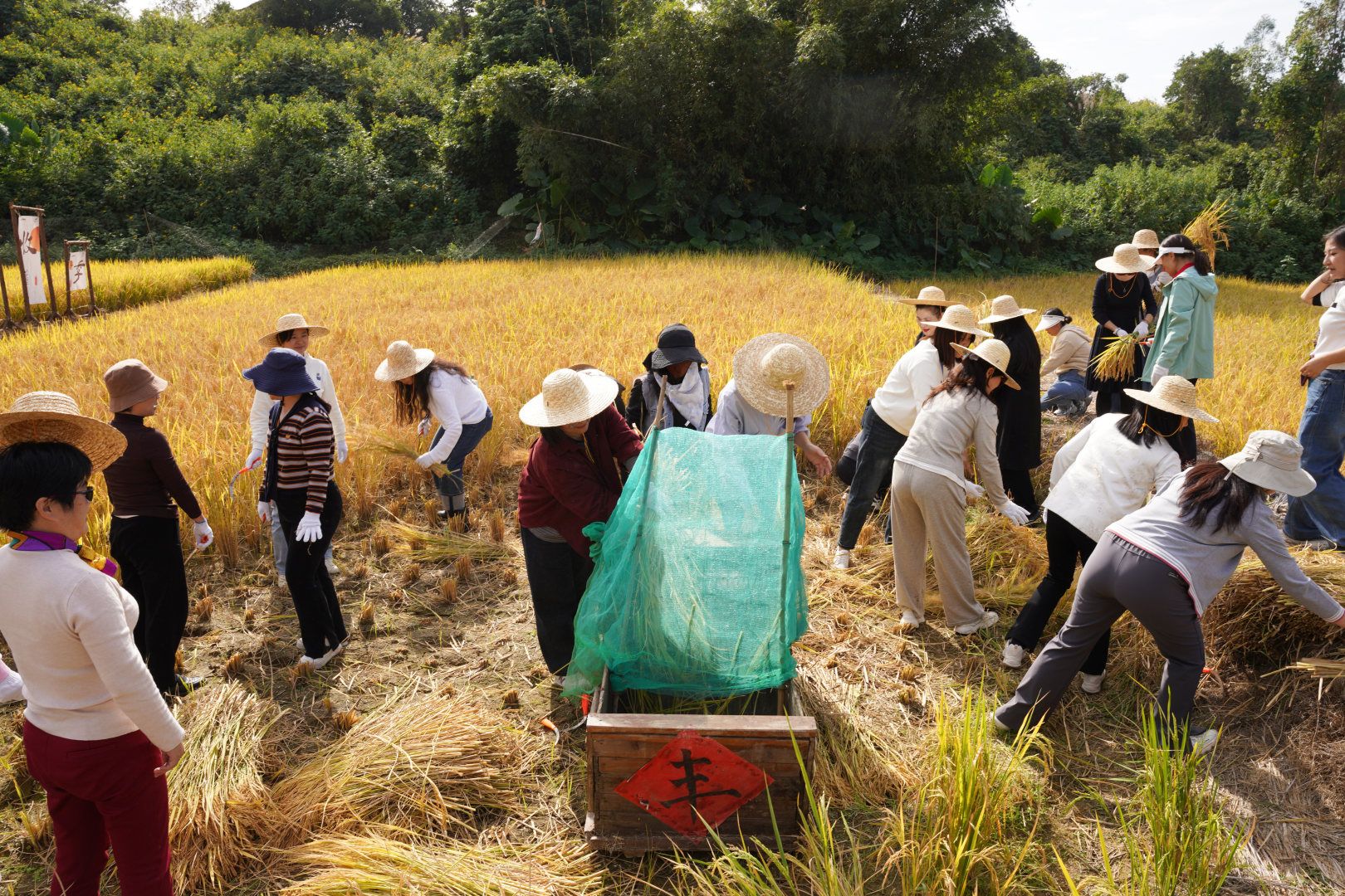 下午的活动转入实践环节。学员们首先参与了“巧手匠心”果壳风铃手工制作活动。该环节寓意深刻,象征着女性工作者默默耕耘、汇聚力量、传播美好的品质,大家在动手协作中放松身心、增进情谊,感悟环保理念与匠心初心。手工活动后,全体人员前往稻田开展劳动教育实践,亲身体验割稻谷、采摘等农事劳作,在秋收的田野上感受耕耘与收获的意义,以实际行动践行初心使命。