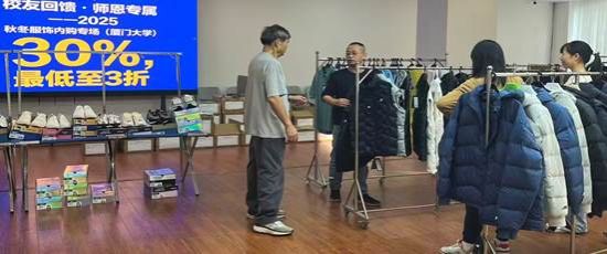 活动分校区有序开展:12 月 3 日至 5 日,翔安校区学生活动中心 A 区大厅的挑选区人头攒动,师生们认真挑选服饰、交流尺码款式;12 月 11 日至 13 日,思明校区教职工活动中心(建文楼)一楼的专场同样人气高涨,不少教职工带着家人一同选购,现场氛围热闹又温馨。“校友企业的优惠很实在,买到的衣服既舒服又百搭”“分校区开展特别方便,不用跑远路就能享福利”,活动现场收获师生一致好评。