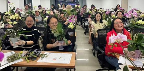 活动现场暖意融融,洋溢着浓厚的节日气氛。工作人员提前准备了各类花艺材料,以象征“福气自来”的蝴蝶兰作为主花,配以绚烂多彩的辅花和精致喜庆的新年饰品,为教职工们的创意创作提供了充足素材。花自古便是美好祝福与期盼的载体,本次活动旨在让大家在亲手创作的过程中感受美、创造美,将对自己、对家人、对生活的真挚祝福融入花艺作品之中,使其成为点缀生活、传递温情的特殊礼物。