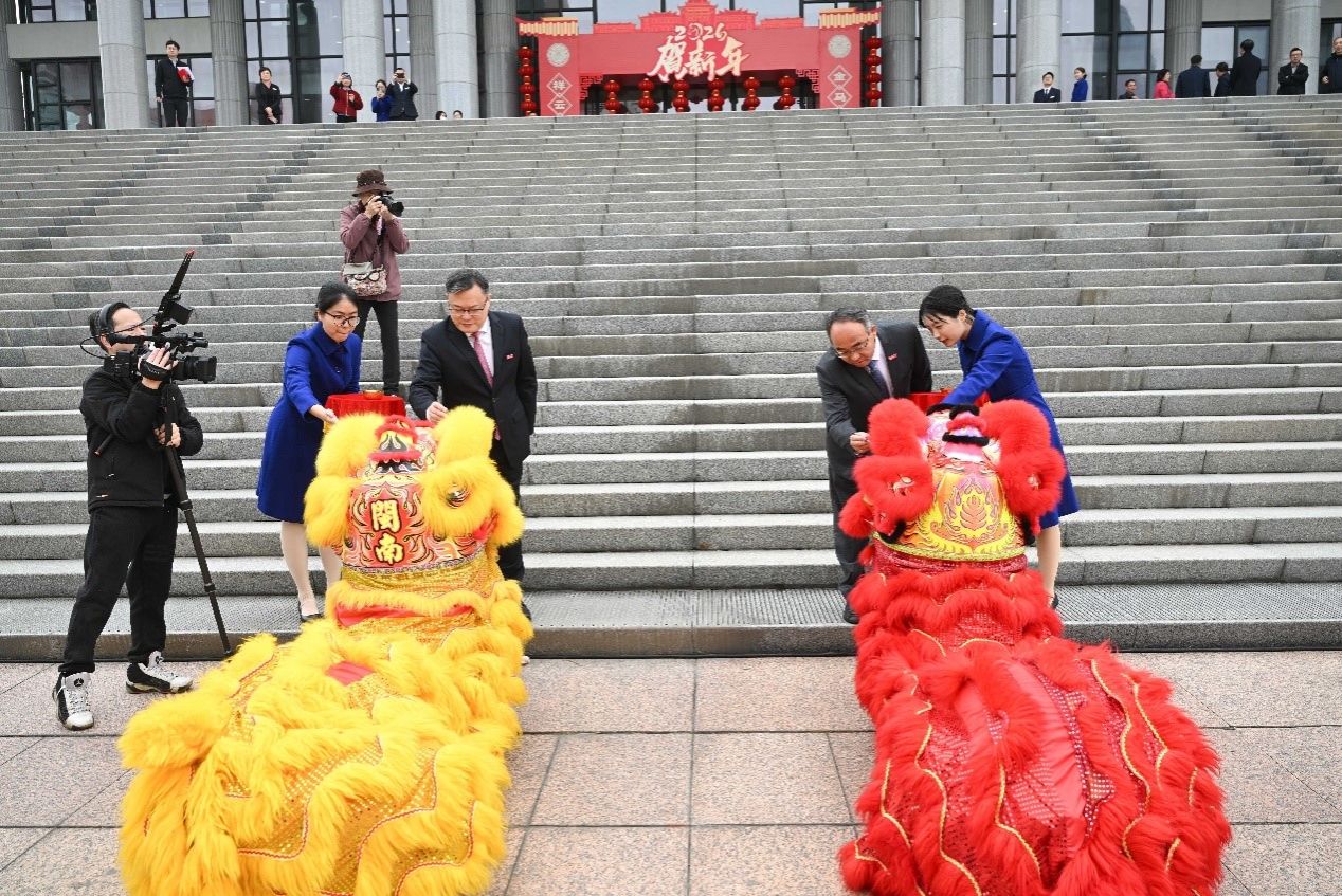 为贯彻落实党的二十大和二十届二中、三中、四中全会精神,深入弘扬中华优秀传统文化,营造欢乐祥和、积极向上的节日氛围,凝聚团结奋进力量共迎新年,2026年1月25日上午,校工会联合离退休工作部(处)在思明校区科学艺术中心广场举行厦门大学2026年新春游园会。校党委书记、中国科学院院士张荣,校长、中国科学院院士胡文平,以及新春茶话会主会场的各位领导、嘉宾亲临活动现场,与师生代表共迎新春,同庆佳节。