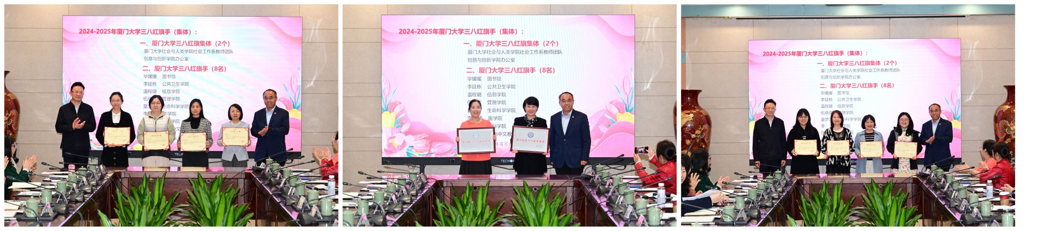 会上,孙理宣读2024-2025年厦门大学“三八红旗集体、三八红旗手”表彰决定。校领导为获奖集体和个人颁奖,并对她们表示热烈祝贺。