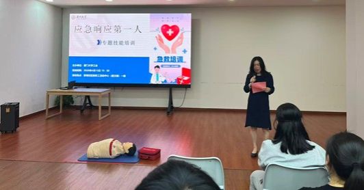 为进一步提升教职工应对突发状况的应急处置与自救互救能力,筑牢校园安全防线,4月15日19:00,校工会在教职工活动中心(建文楼)一楼成功举办了“应急第一响应人”专题技能培训。活动由校工会副主席郭如梅主持,特邀厦门市红十字救护培训中心杨洋老师担任主讲。
