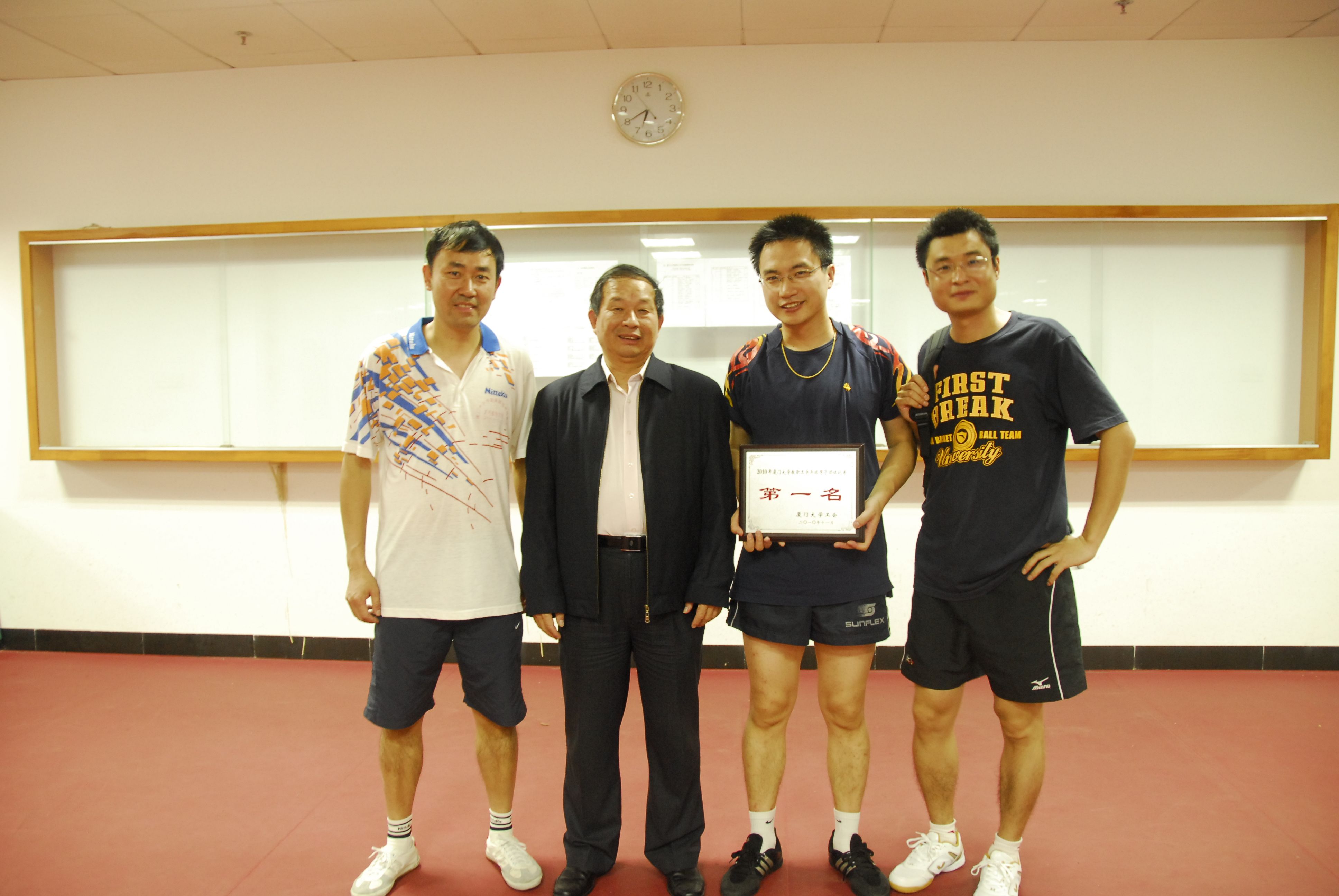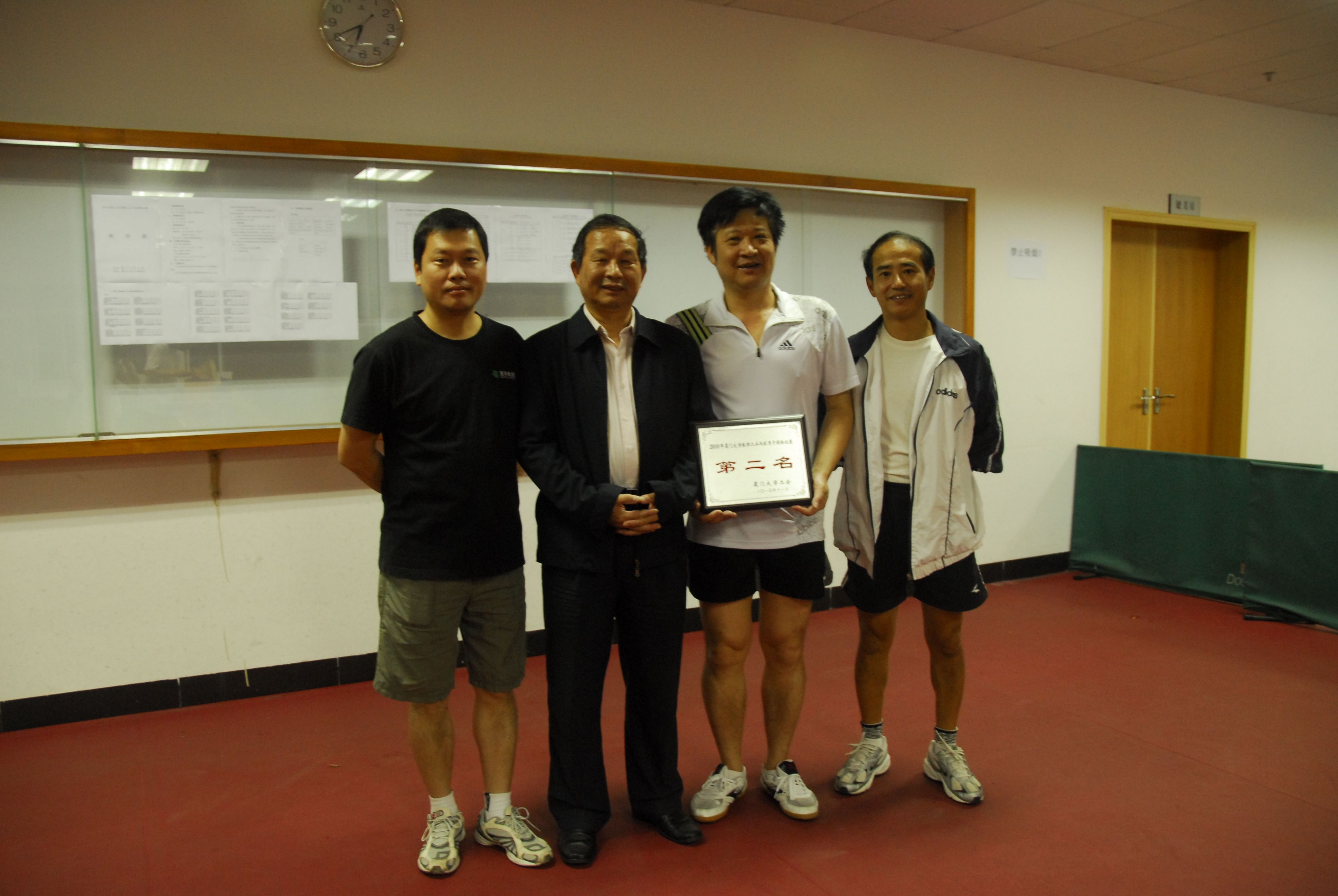 经过4天的激烈角逐,11月11日晚,由校工会主办的2010年厦门大学教职工乒乓球团体比赛在教职工活动中心圆满落下帷幕。校工会主席林永生到现场给各获奖队进行了颁奖,并对运动员们取得的成绩表示祝贺。