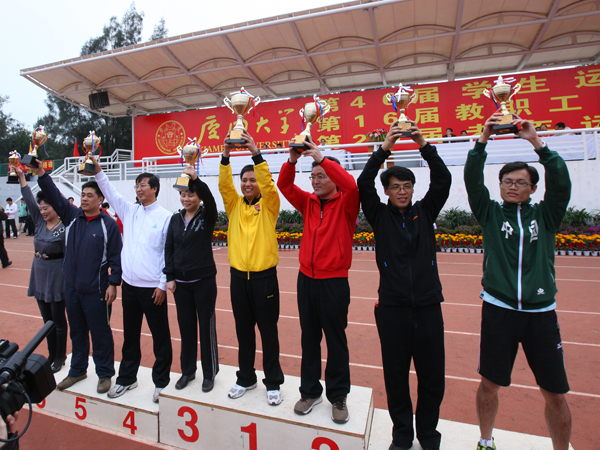 11月12日下午四点半,我校第46届学生田径运动会、第16届教职工运动会、第20届老年运动会闭幕式暨颁奖仪式在演武田径场举行。副校长赖虹凯为获奖单位颁发了奖牌和奖杯。闭幕式由校工会主席林永生主持。
