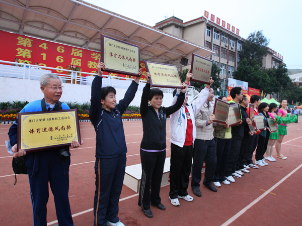 同时,获得第16届教职工运动会体育道德风尚奖的有:建筑与土木工程学院、医学院、化学化工学院、继续教育与职业教育学院、材料学院、人文学院、海洋与地球学院/环境与生态学院联队、生命科学学院、物理与机电工程学院、管理学院、艺术学院、新闻传播学院、机关三总支、公共卫生学院、经济学院、信息科学与技术学院、机关一总支、图书馆。特别奖:老年体协。