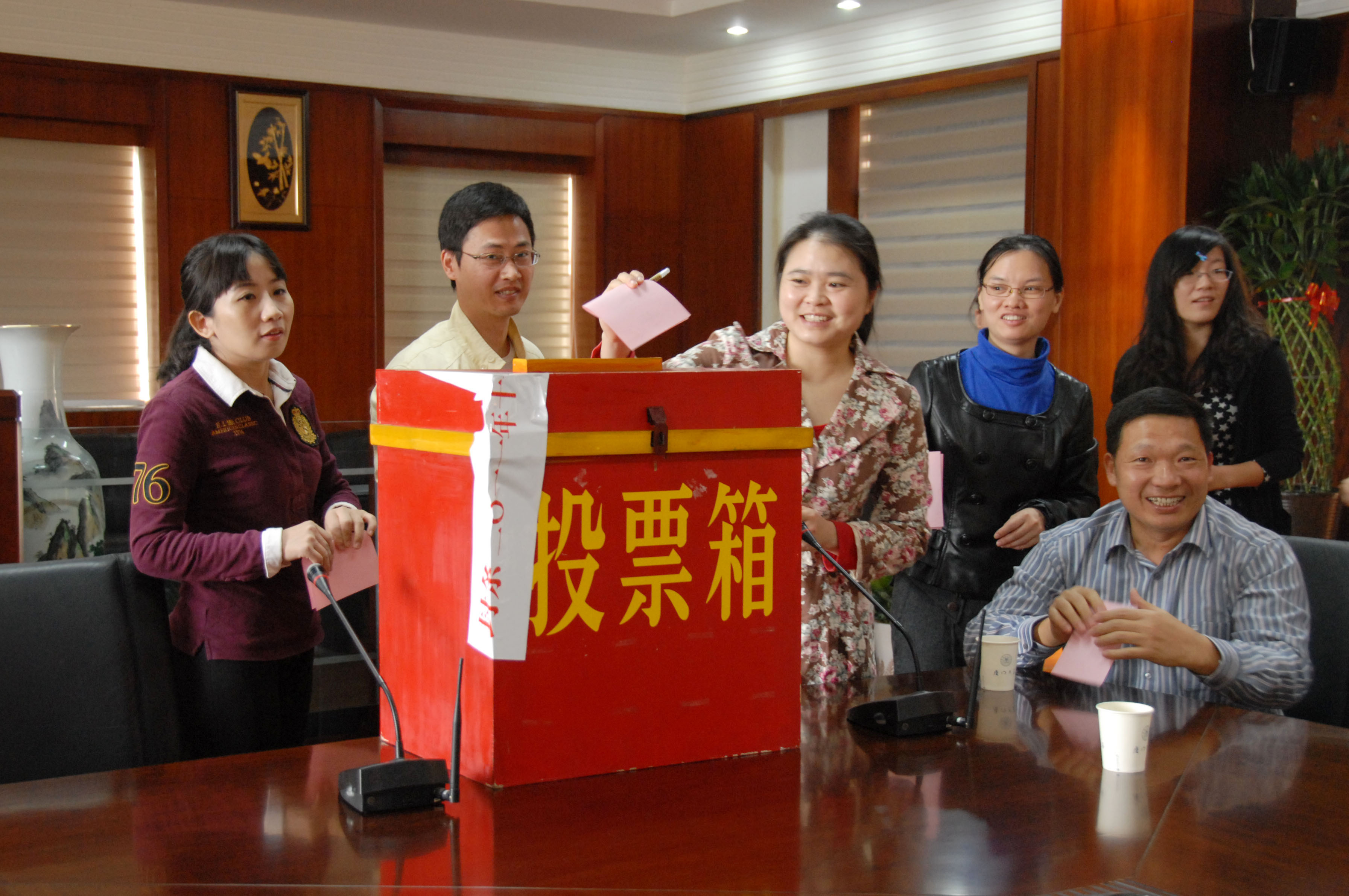 许和山首先介绍了学院部门工会成立及选举工作的筹备情况,宣读了校工会对学院成立部门工会请示的批复,在向与会会员介绍了候选人的基本情况后,选举工作开始。经过无记名投票,选举工作人员宣布:李德元、龙坚毅、杨胜良、叶兴建、吴文琦五位同志当选为马克思主义学院第一届工会委员,与会同志对此报以热烈的掌声。随后,工会新一届委员会召开第一次会议,一致推选李德元同志为部门工会主席。
