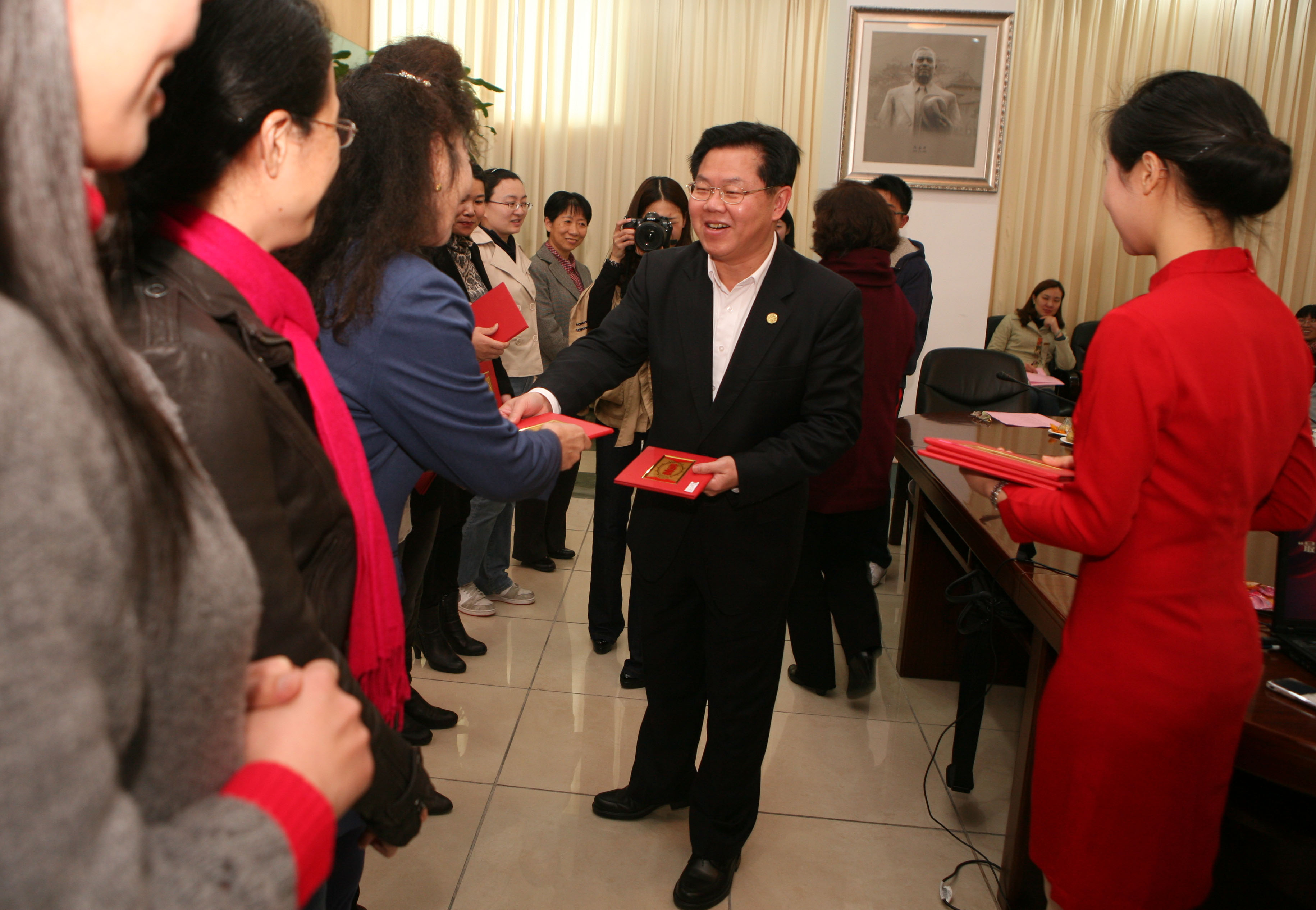 朱崇实在讲话中说,多年来,我校广大妇女同胞以强烈的主人翁意识和“巾帼不让须眉”的豪迈气概,自强自立,奋发有为,积极投身学校各项事业,发挥着独特的“半边天”的优势和作用,为学校科学发展与和谐校园建设做出了巨大贡献。当前,我们要把学习和贯彻《高等学校教师职业道德规范》和我校师德师风建设大会精神相结合,希望广大女教师爱国爱校守法,加强自身修养,关心爱护学生,遵守学术规范,勇担社会使命、肩负起“立德树人、教书育人”的光荣职责。