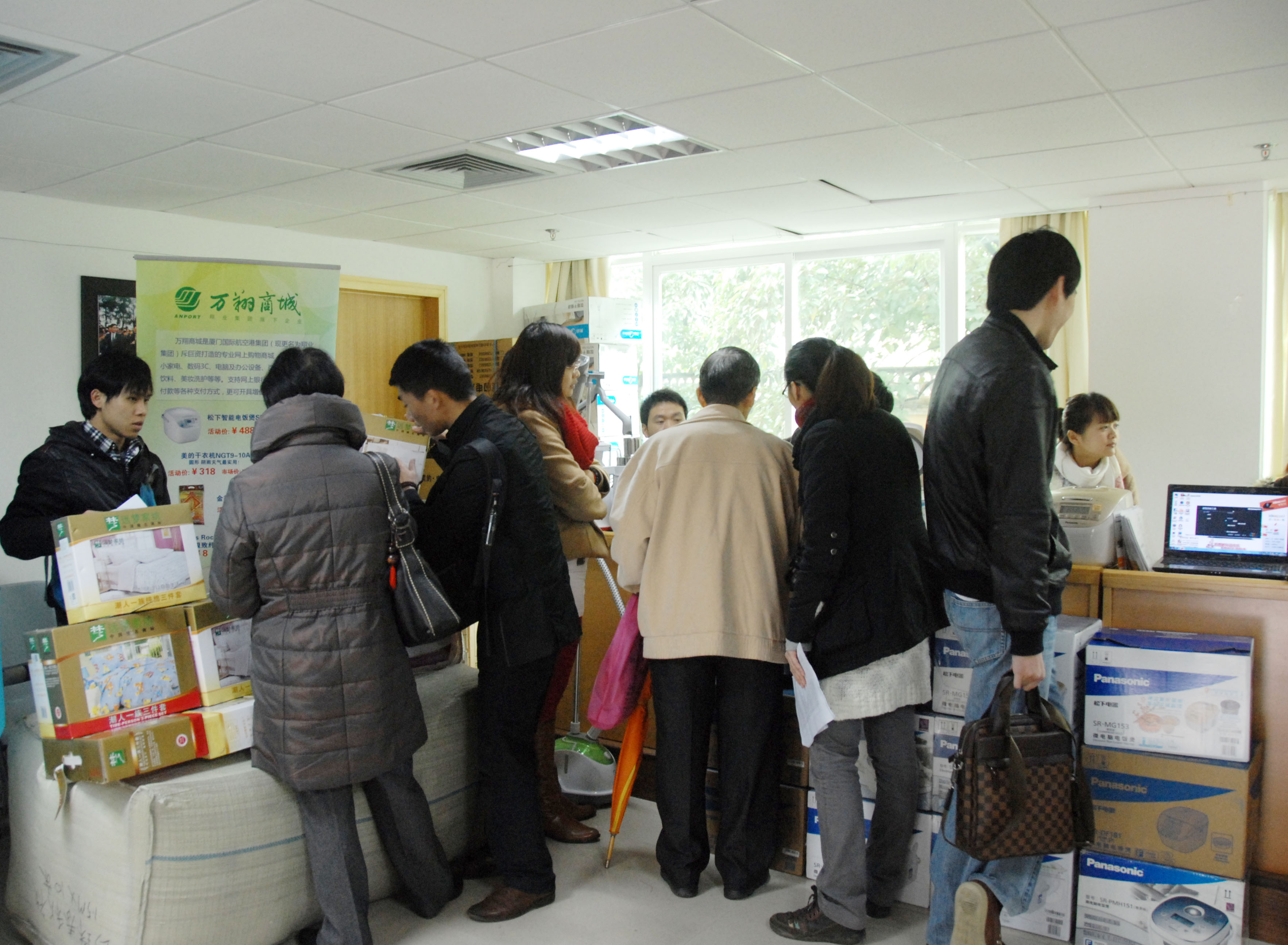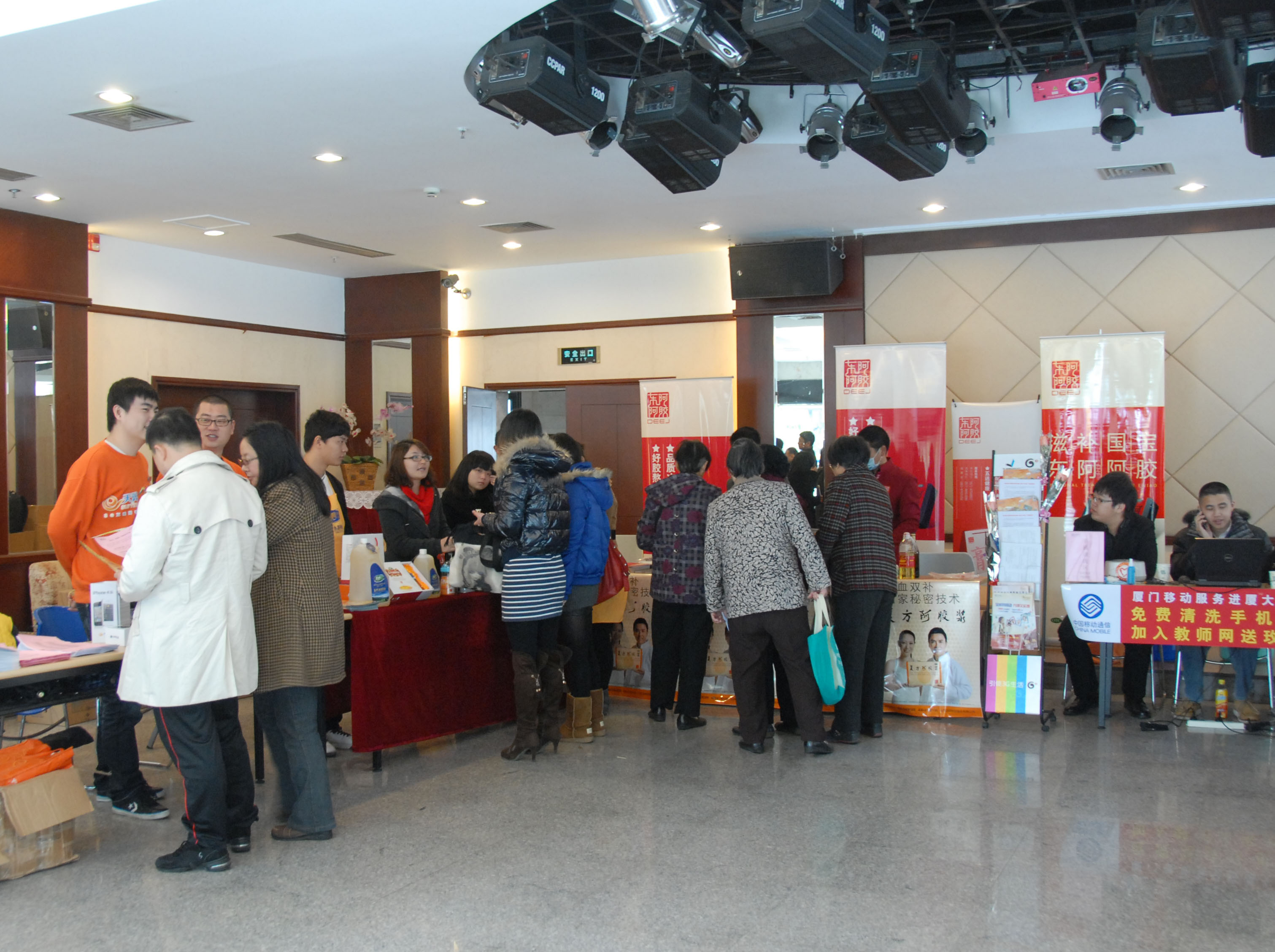 走入活动中心大厅,只见各个商家纷纷搭起“爱心小铺”,为给我校教职工提供更优质的服务,商家推出的商品价格实惠,种类繁多,有手机通信,美体护肤,生活小家电,五金粮油,家居家纺等类别,吸引了广大教职工前来观看购买。他们当中有在职教职工,离退休教职工和大学生们,每个人脸上都洋溢着开心的笑容,有的在眼镜商家前咨询健康用眼相关知识,并欣喜地领取商家赠送的高质量镜片;有的就如何使用更划算的电话套餐与通信商家沟通交流;有的为家人朋友精心挑选节日礼物;女教职工们更是本次活动的主力军,她们既是工作能手,又是家庭中的“生活管家”,瞧她们和商家交流时的专业劲儿,大米、油盐、小家电……每个人都有所收获,满载而归。