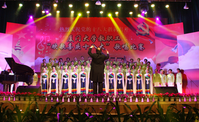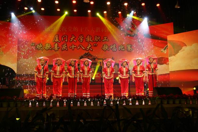 精华聚南强,曲曲寄深情。通过举办本次歌唱比赛,我们唱响今夜,追忆过去,放飞未来。厦门大学教职工们为十八大的顺利召开献上了最诚挚的赞礼!