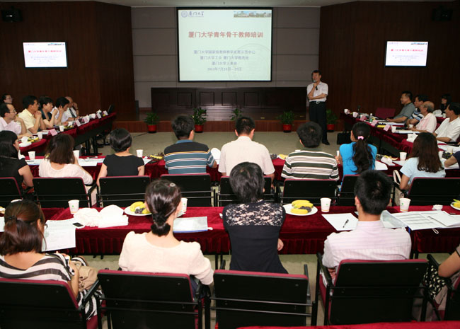 据悉,本次培训班为期四天,来自全校各个学院60余名青年骨干教师参加培训。教务处处长计国君、教育研究院教授别敦荣将先后在培训班上作《厦门大学本科人才培养与课程体系建设及思考》和《现代大学的教学理念与方法》的专题报告。我校优秀教师李莉、李菁、吴清锋也将为学员作授课示范。同时,培训班还邀请了人文学院教授朱水涌、海洋与地球学院教授曹文清等教学名师为学员们的现场试讲进行点评指导。