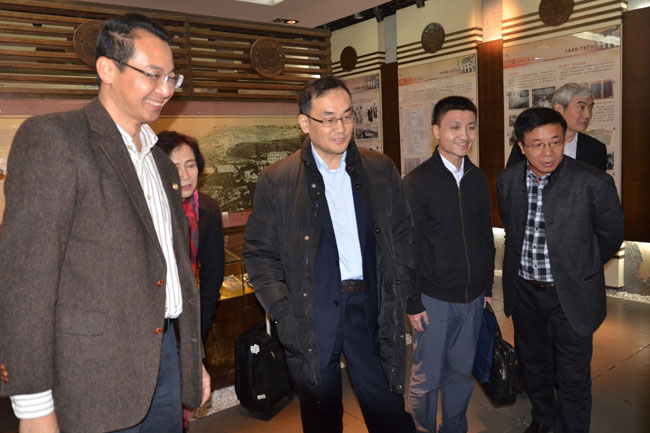 座谈会前,江广平来到校史馆,了解我校历史和办学特色。到台湾研究院,与院长刘国深等专家学者就发展两岸关系,深化两岸基层职工交流等问题进行探讨。