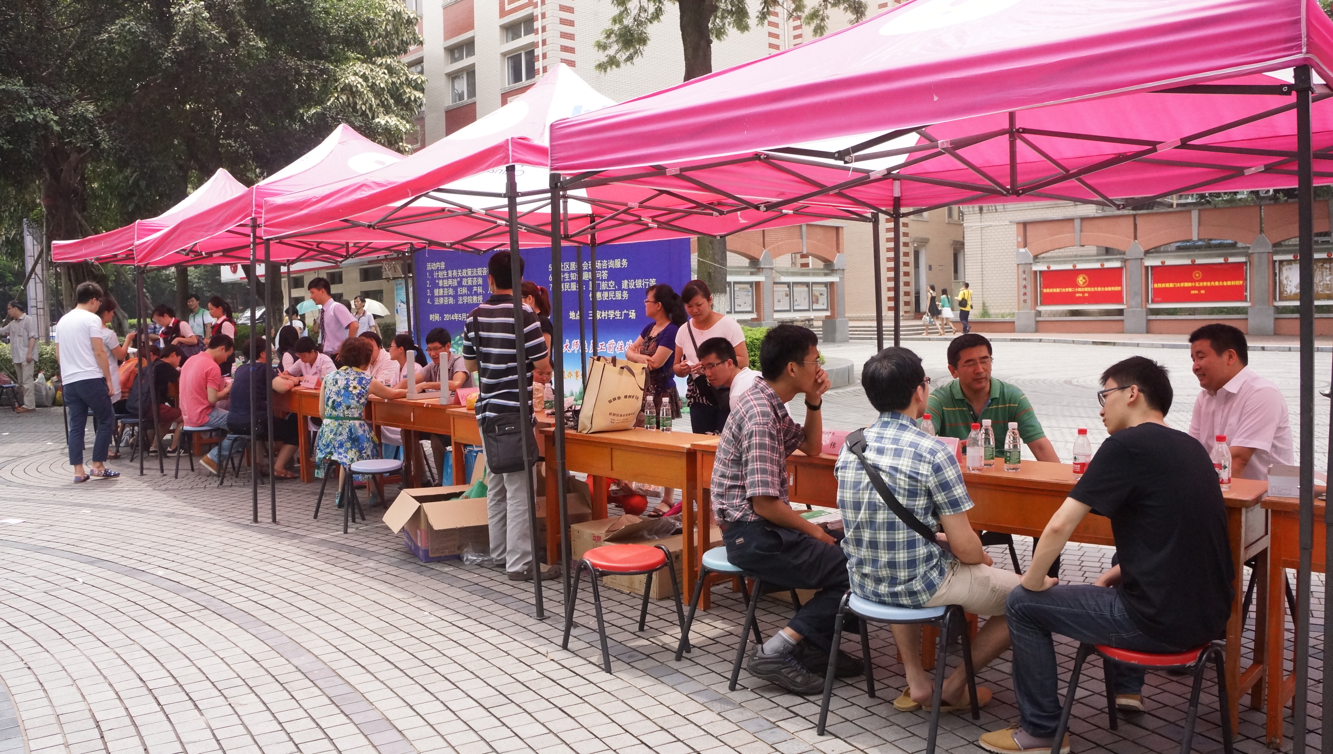 培训讲座结束后,在三家村学生广场开展了“情系厦大师生 创建幸福家庭”人口与计生宣传服务活动。学校师生踊跃参加,就法律、健康、生育等问题向专家进行了咨询,并得到了全面详实的回复。