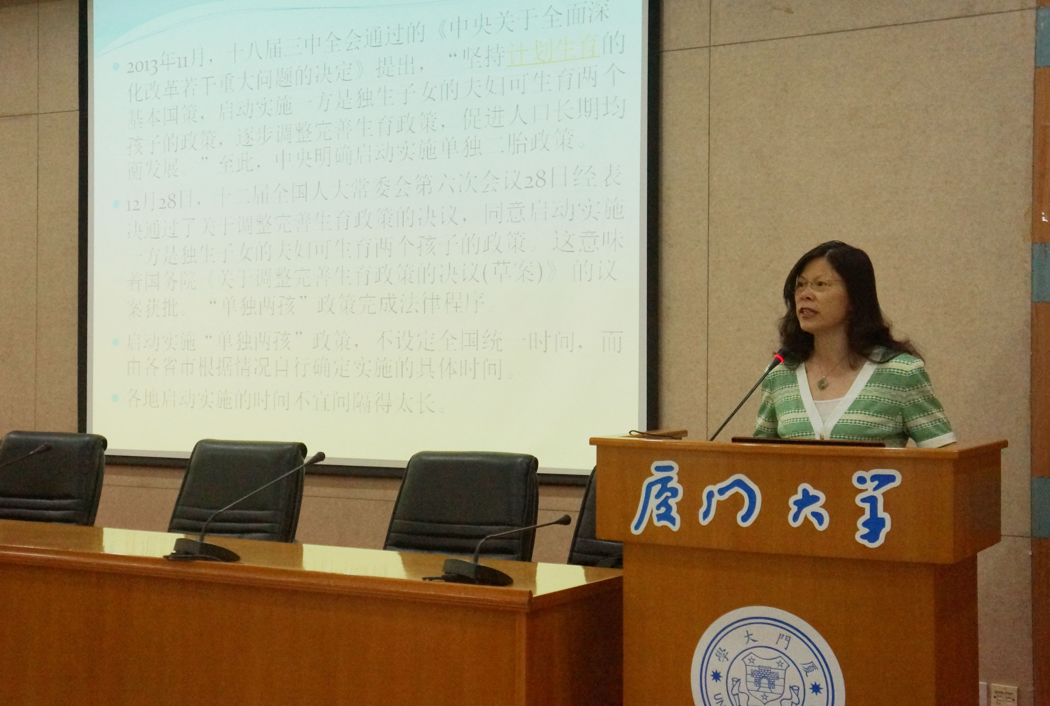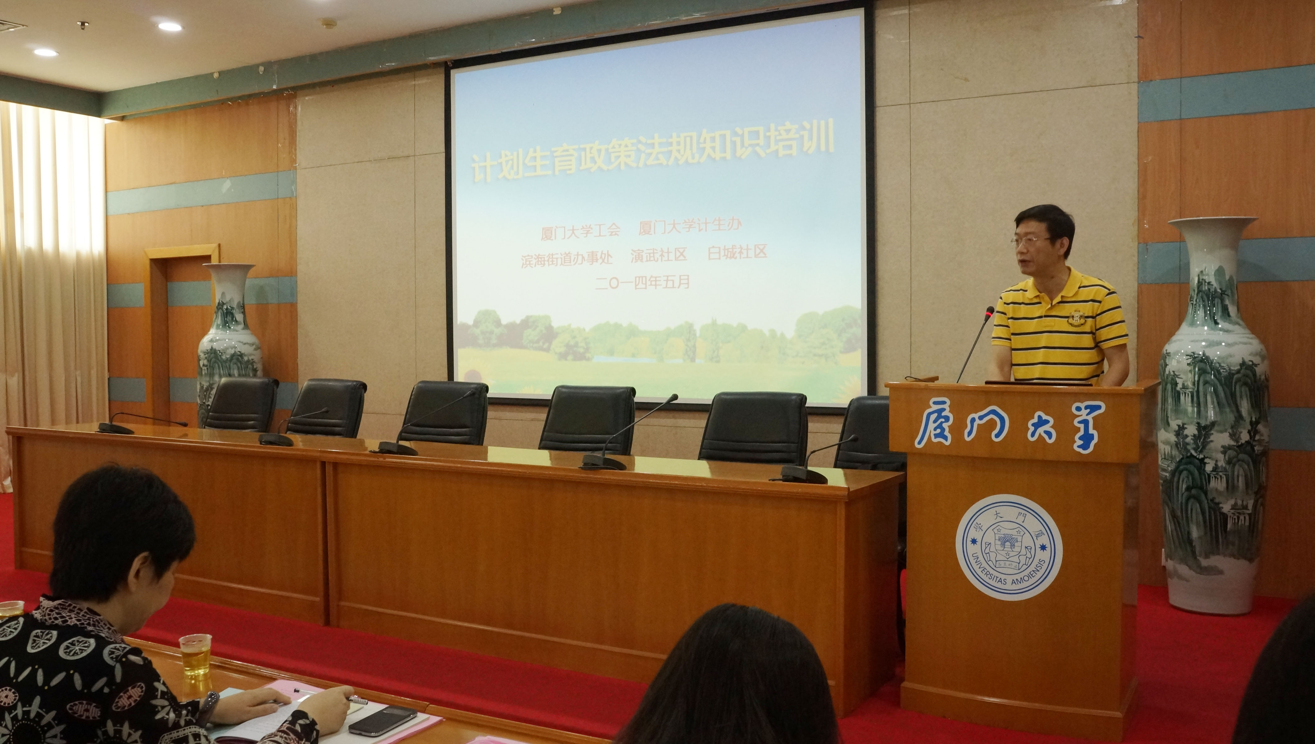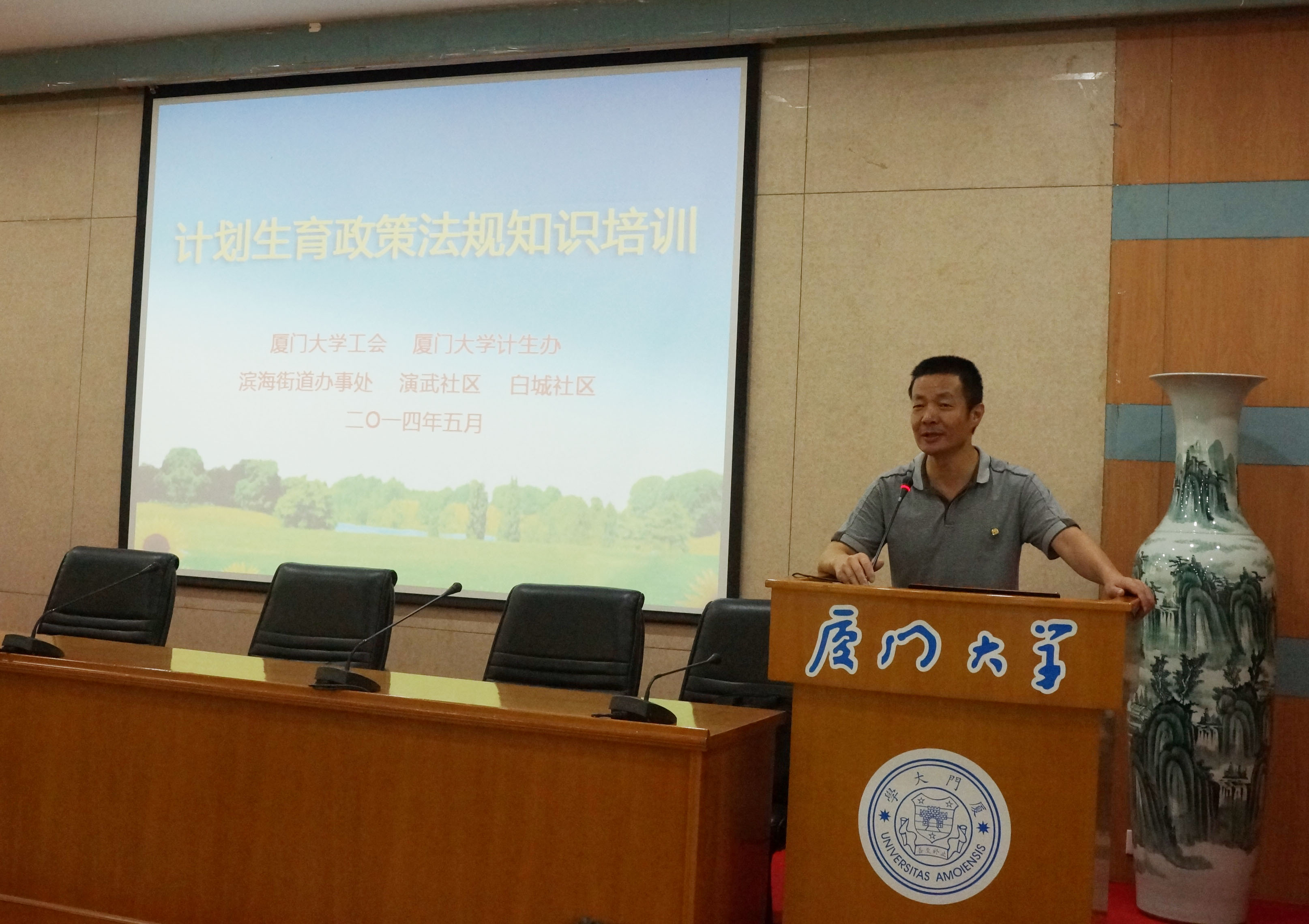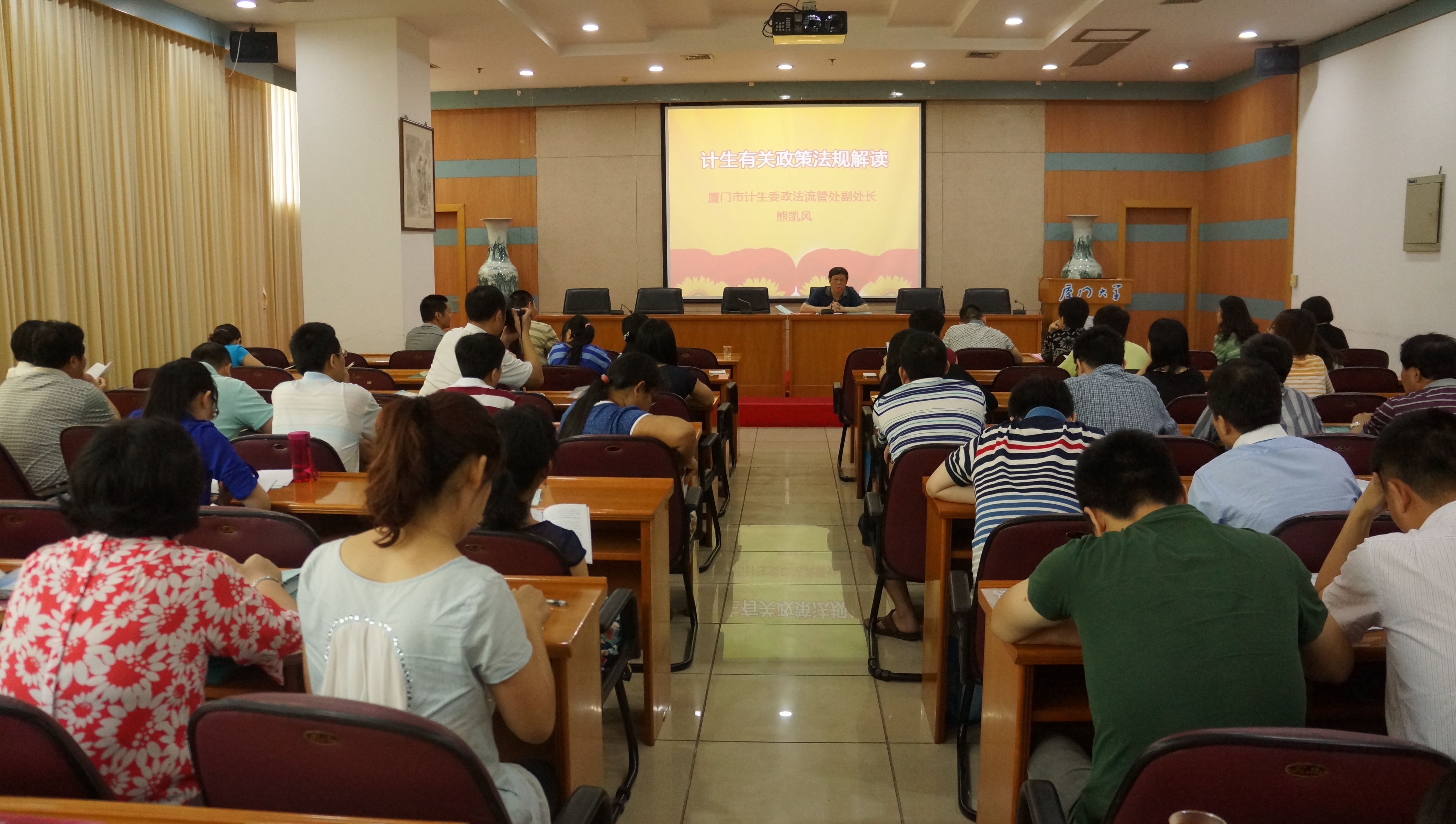 计划生育政策法规知识培训讲座在颂恩楼220会议室举行。厦门市计生委政法流管处副处长熊凯风,思明区计生局副局长许文通,滨海街道党工委委员、办事处调研员郭黄龙等区街道领导,我校工会常务副主席、计划生育领导小组副组长宋毅,校工会副主席、妇委会主任、计划生育领导小组成员蒋月,校宣传部副部长、计划生育领导小组成员楼红英,思明区所属各街道、滨海街道所属各社区计生干部,我校各学院(研究院)办公室主任、各部门工会主席、机关部处秘书等出席培训讲座。校工会副主席、计划生育领导小组成员秦红梅主持讲座。