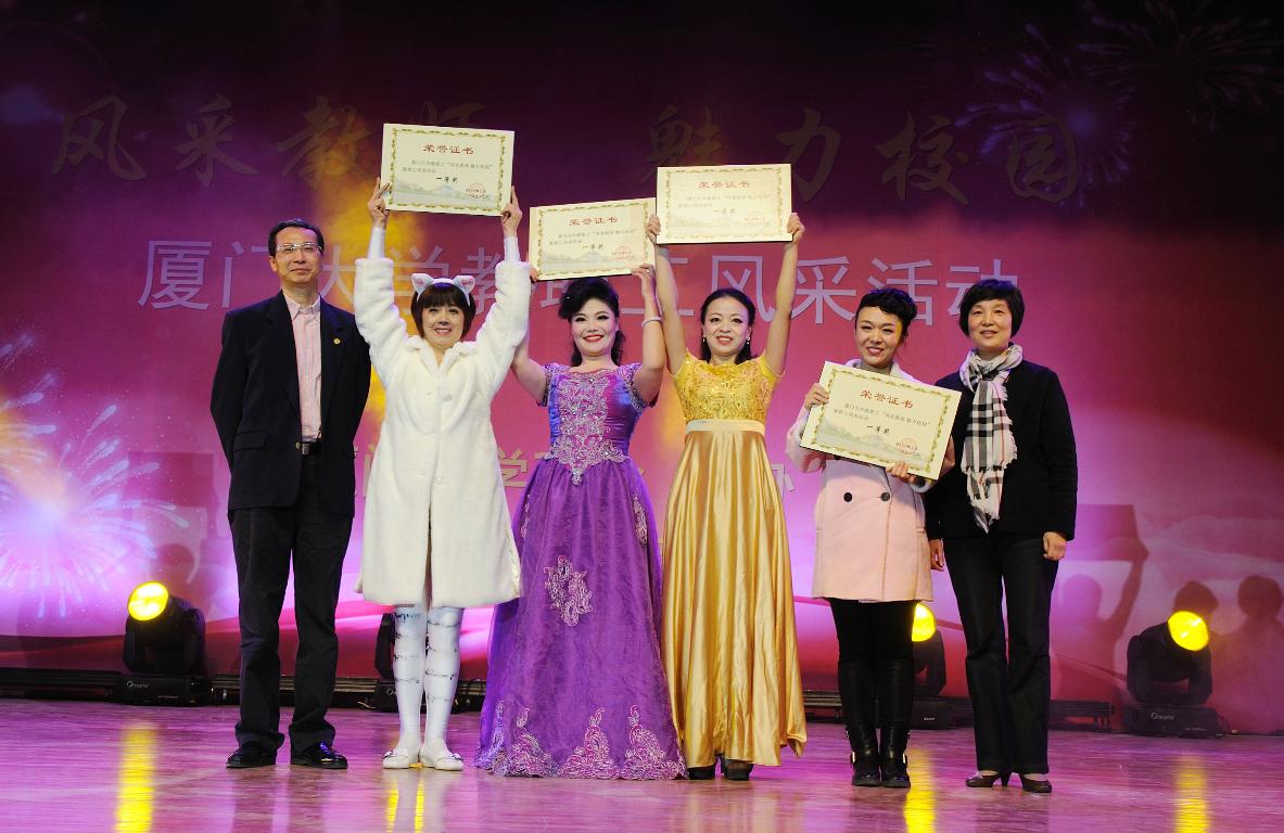 经过激烈的角逐,现场评委组认真评审、计分,管理学院的女声独唱“阳光路上”、医学院的女声独唱“边关军魂”、人文学院的男声独唱“九曲黄河一壶酒”等参赛节目分获歌唱组的一、二、三等奖;国际交流中心的钢琴独奏“翻身道情”、环境与生态学院的配乐舞蹈诗朗诵“雨巷”、人文学院的原创舞蹈“女儿情”等参赛节目分获才艺组的一、二、三等奖。校领导为获奖单位依次颁发奖状,并合影留念。