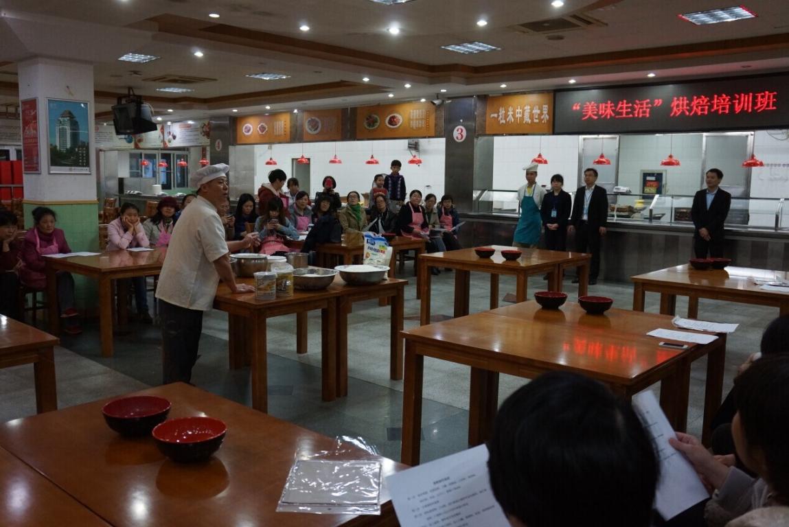 为丰富广大女教职工的业余生活,提升女教职工生活品质,让女教职工在紧张的工作之余放松心情,舒缓工作压力,提高生活技能。12月18日晚,由校工会和校妇委会联合举办的“美味生活”烘焙培训班在芙蓉餐厅二楼顺利开班,来自各基层妇委会的100余位教职工参加了培训。