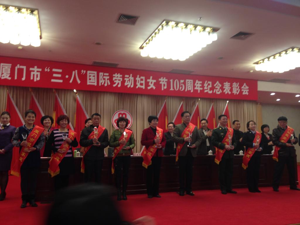 我校多位团体及个人获得表彰,其中,物理与机电工程学院办公室获得“福建省巾帼文明岗”荣誉称号,马克思主义学院副院长、妇女/性别研究与培训基地副主任石红梅副教授获得“厦门市三八红旗手标兵”荣誉称号,化学化工学院副院长朱亚先教授获得“厦门市三八红旗手”荣誉称号,人文学院戏剧影视艺术研究与教学团队获得“厦门市三八红旗集体”荣誉称号,台湾研究院邓利娟家庭获得“厦门市五好文明家庭暨‘最美家庭’”荣誉称号,国际关系学院赵海立家庭荣获“‘夫妻和睦’特色最美家庭”荣誉称号。